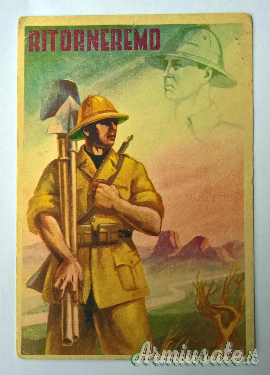 Abbigliamento - Cartolina fascista commemorativa per operazioni in A.O.I. – “RITORNEREMO” (ITALIA WW2)