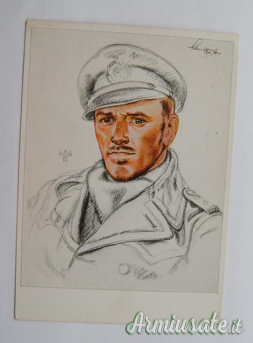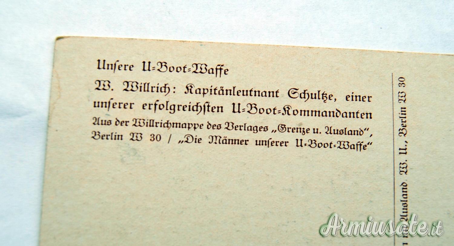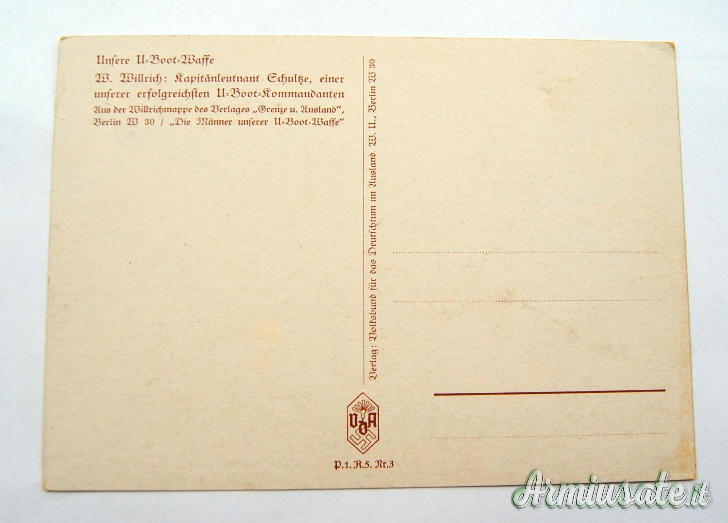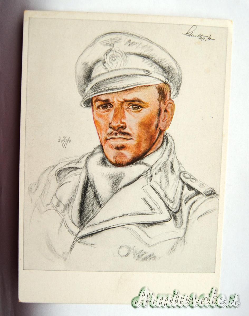 Abbigliamento - Cartolina tedesca nazista con bozzetto a colori Comandante U-BOOT H. Schultze 1939 (GERMANIA WW2)