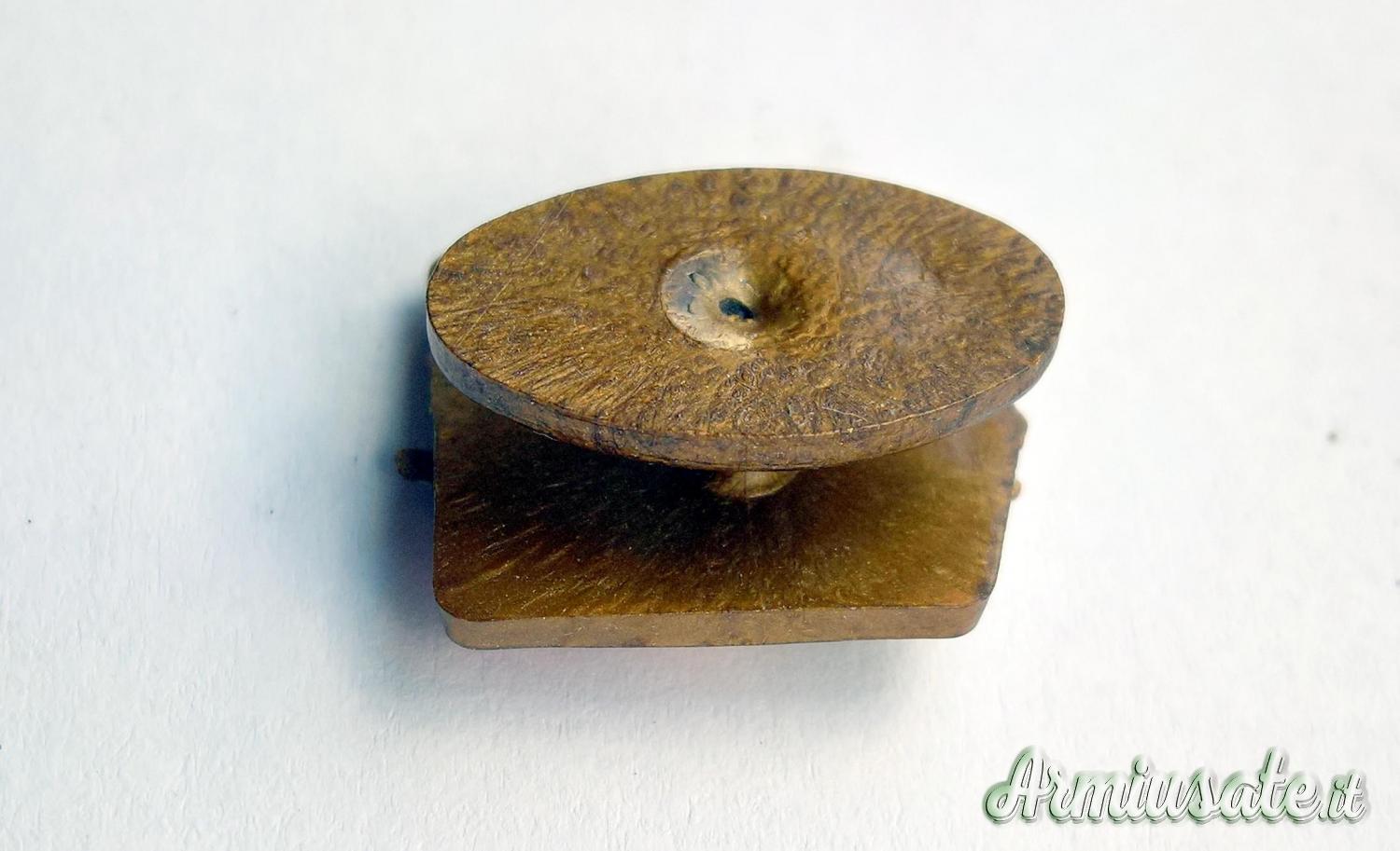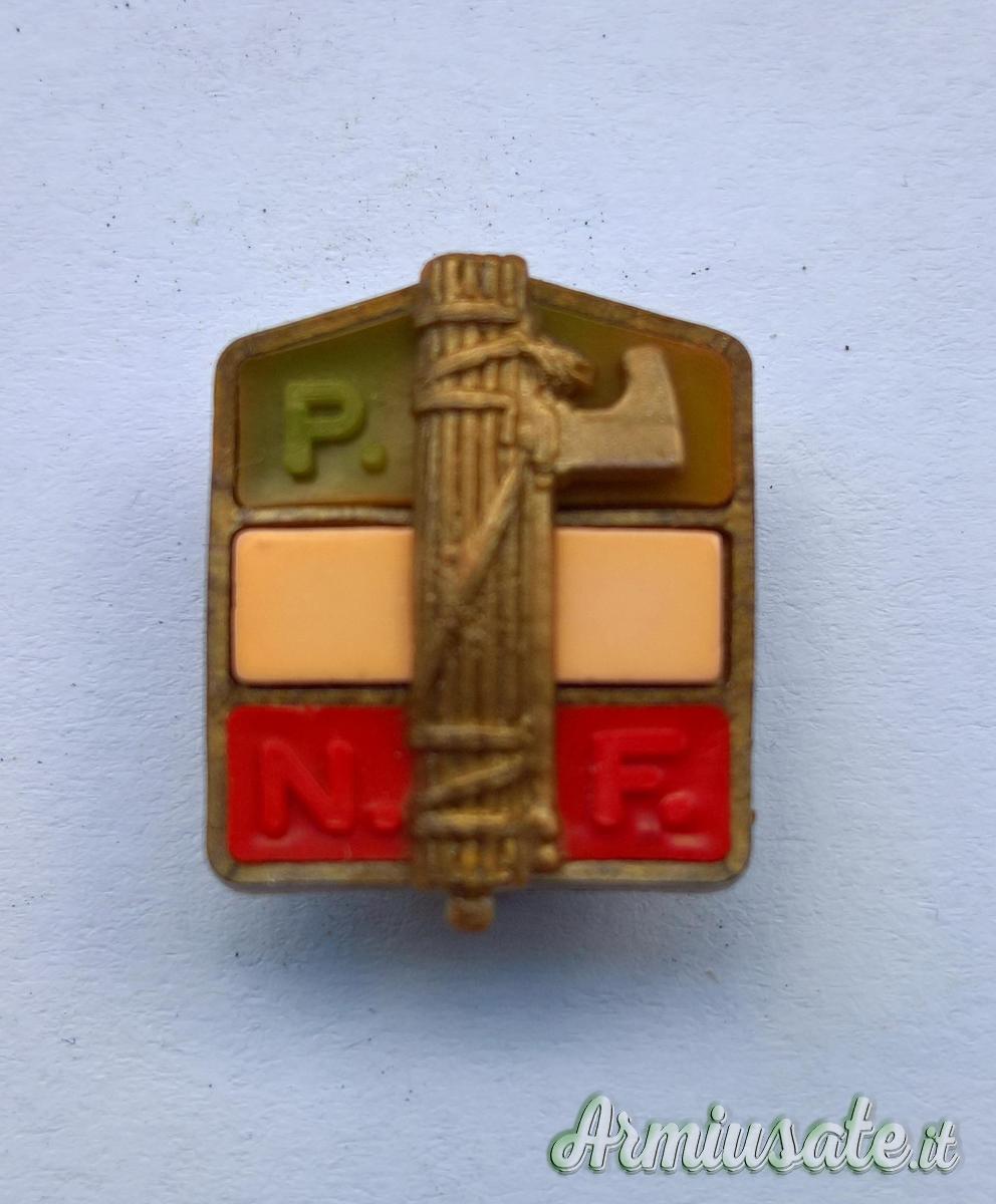 Abbigliamento - Distintivo fascista del P.N.F. di 3’ tipo variante in galatite dipinta – Molto Raro (REGNO D'ITALIA)
