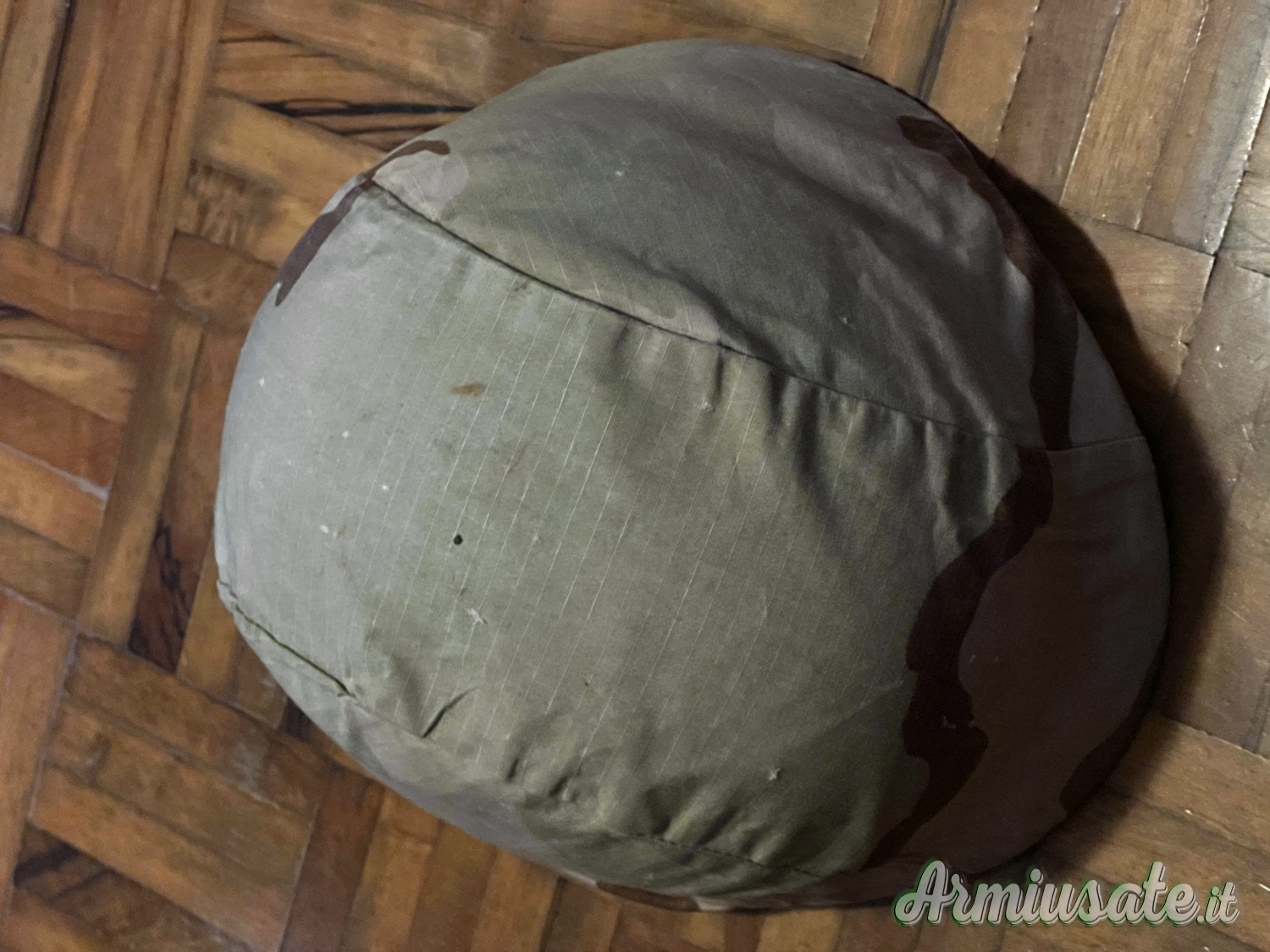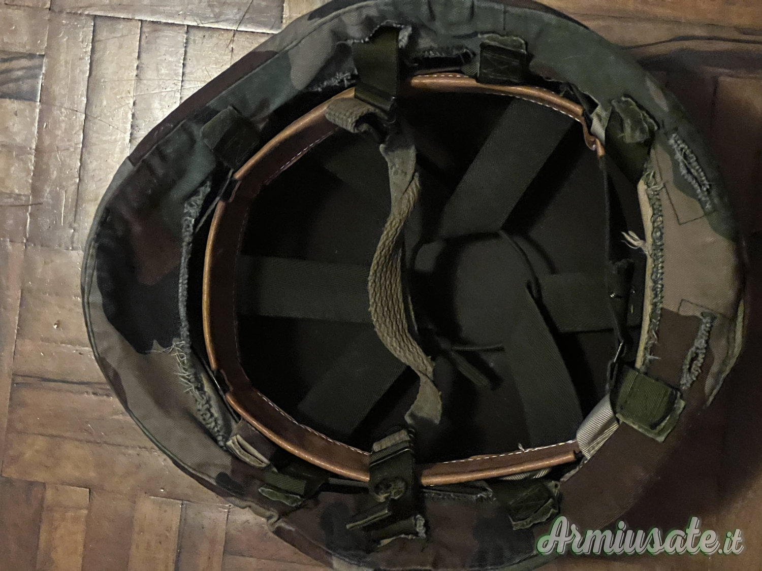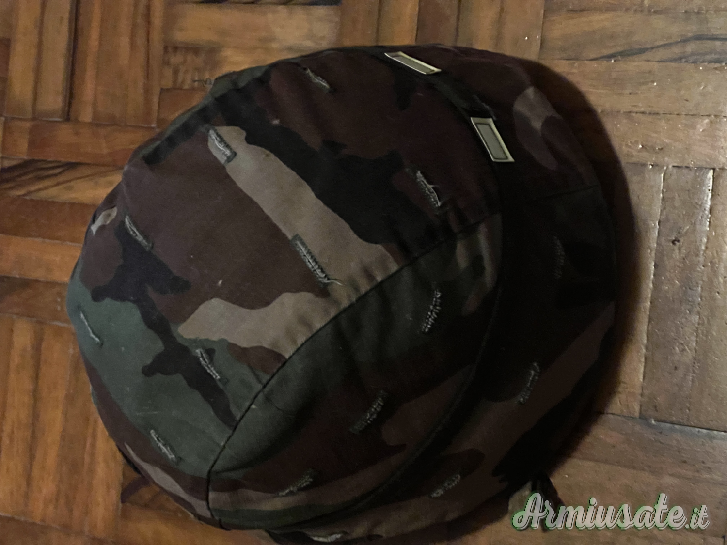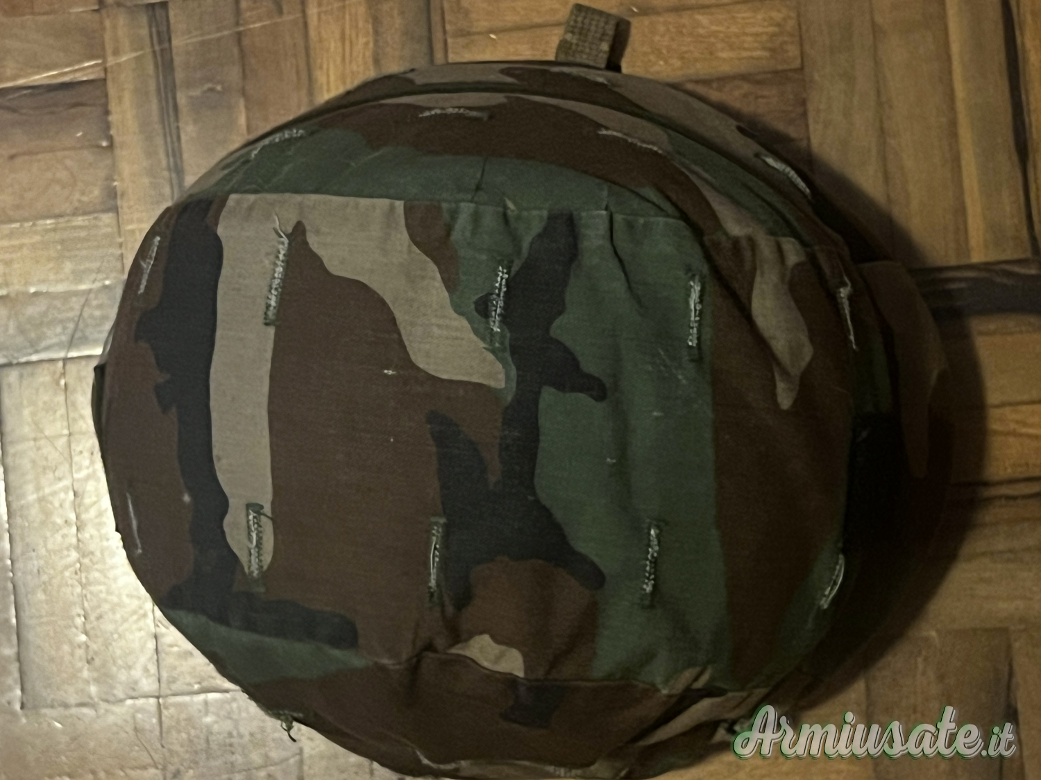 Dotato di sistema interno di sospensione/regolazione e cover esterna mimetica removibile.Comprende due telini di copertura, una woodland e uno desert. Inclusa inoltre fascia occhi di gatto. Condizioni perfette.