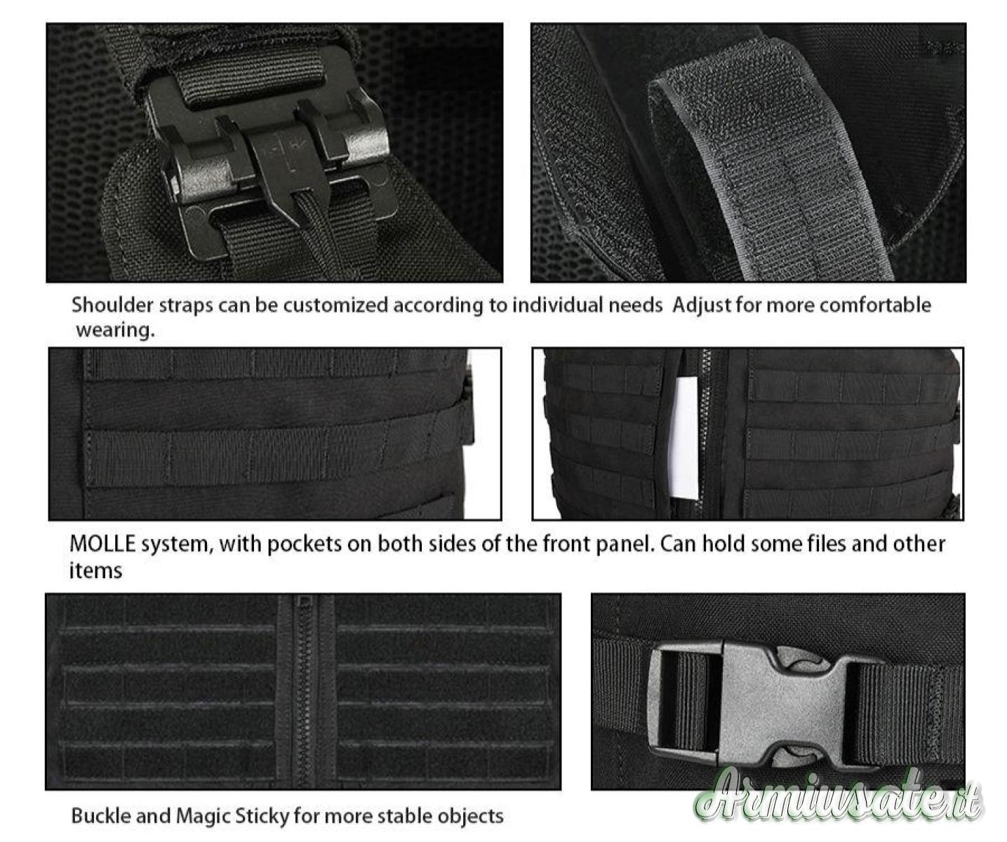 Datato di piastre balistiche frontali e posteriori che proteggono fino al calibro 357M.