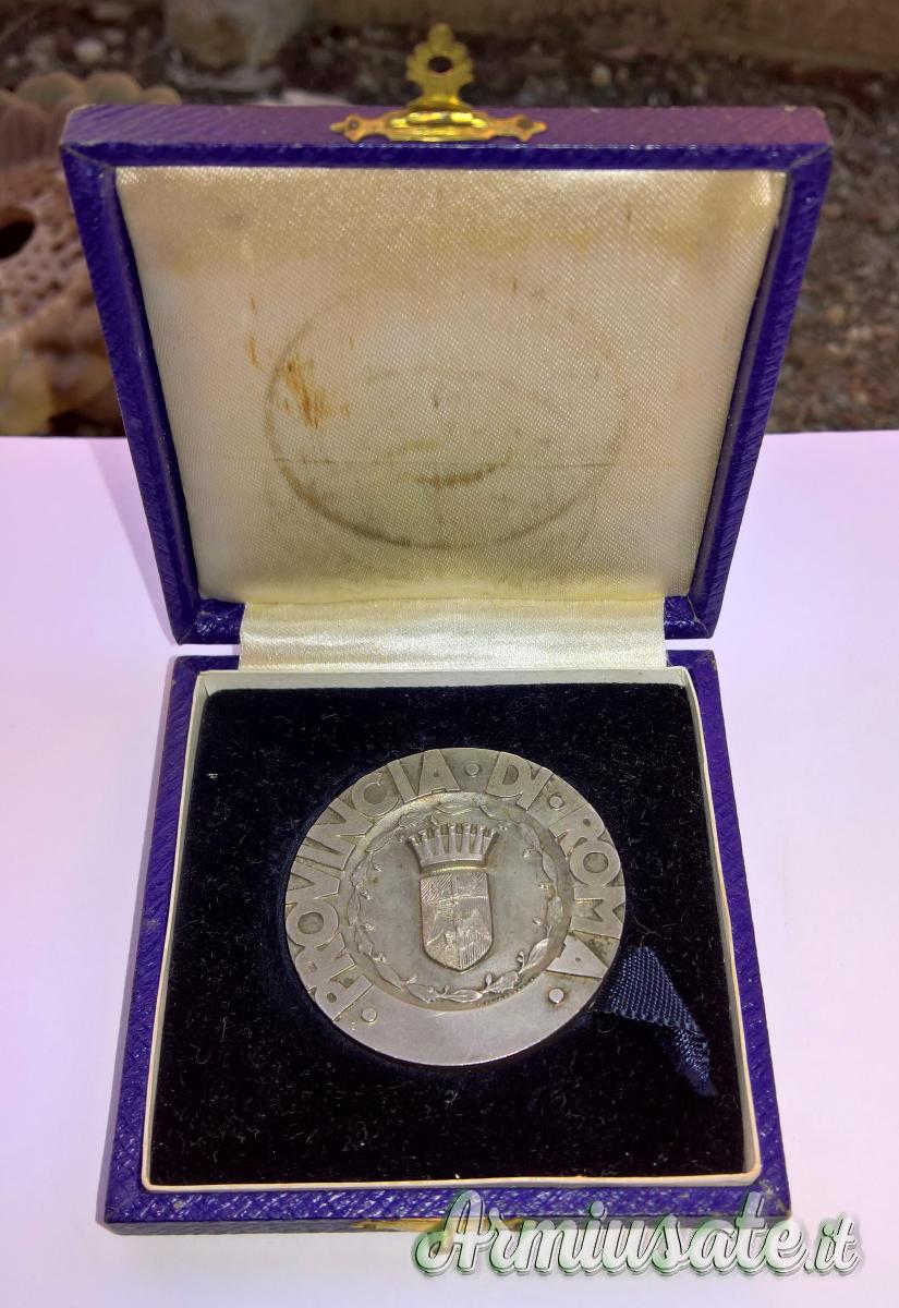 Abbigliamento - Medaglia fascista della Provincia di Roma marcata in Argento con scatola - anni '30 (REGNO D'ITALIA)