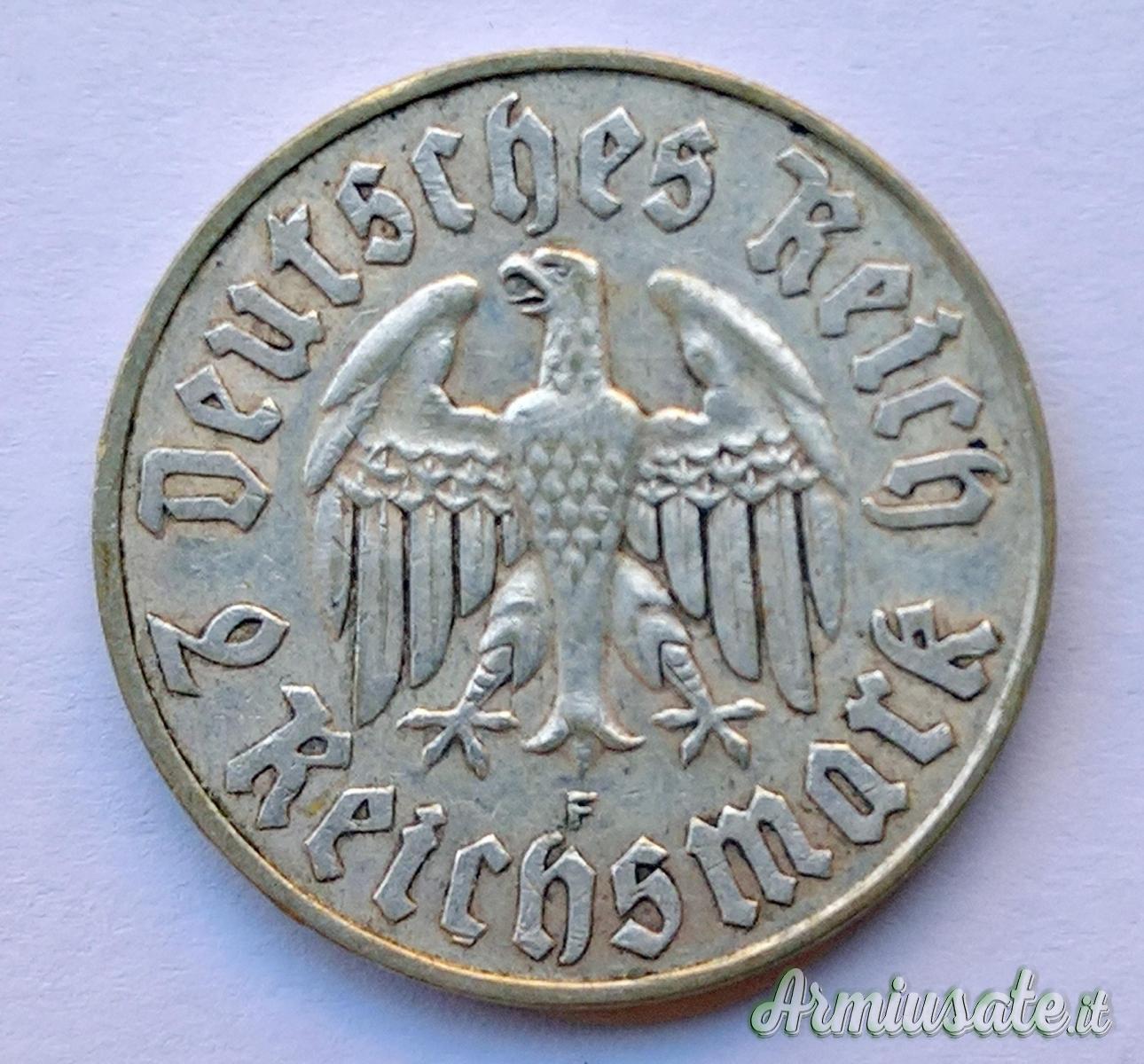 Abbigliamento - Moneta nazista da "2 marchi" - 1933 - modello MARTIN LUTERO – “F” – Argento (GERMANIA WW2)