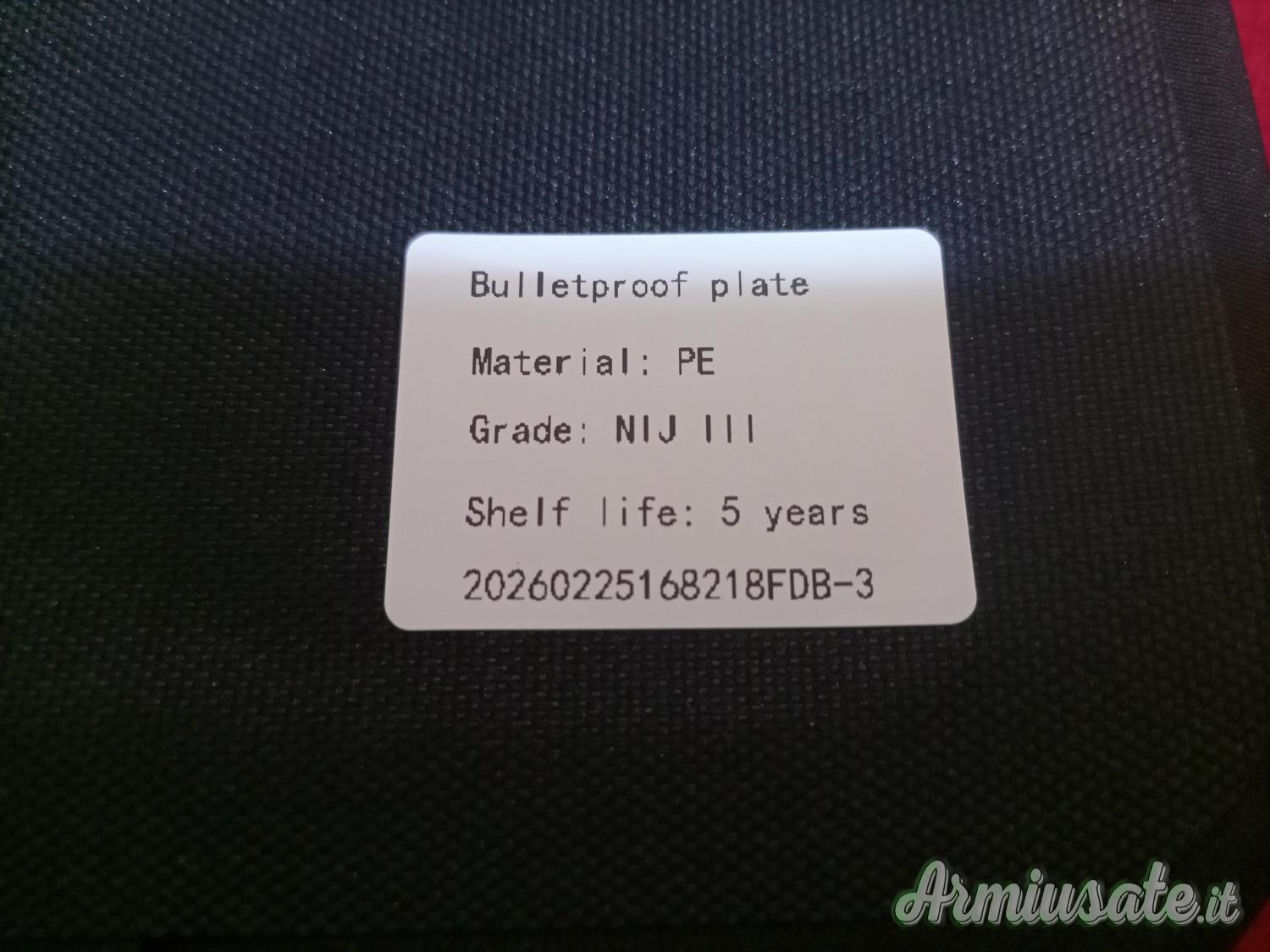 Materiale PE kevlar, rigide e ultra leggere, con etichette identificative.