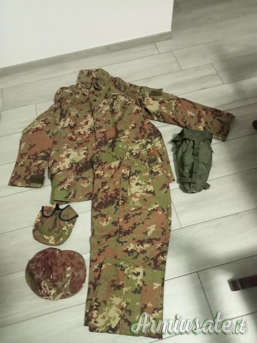 Tuta vegetata Nuova completa di giacca , pantaloni, berretto, porta borraccia ( o altro ) , maschera gas e contenitore.