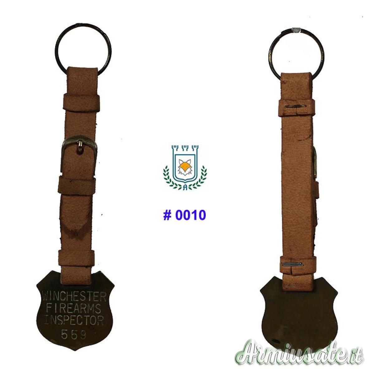 "Note: PORTACHIAVI IN CUOIO E MEDAGLIA ""INSPECTOR FIREARMS" IN OTTONE.