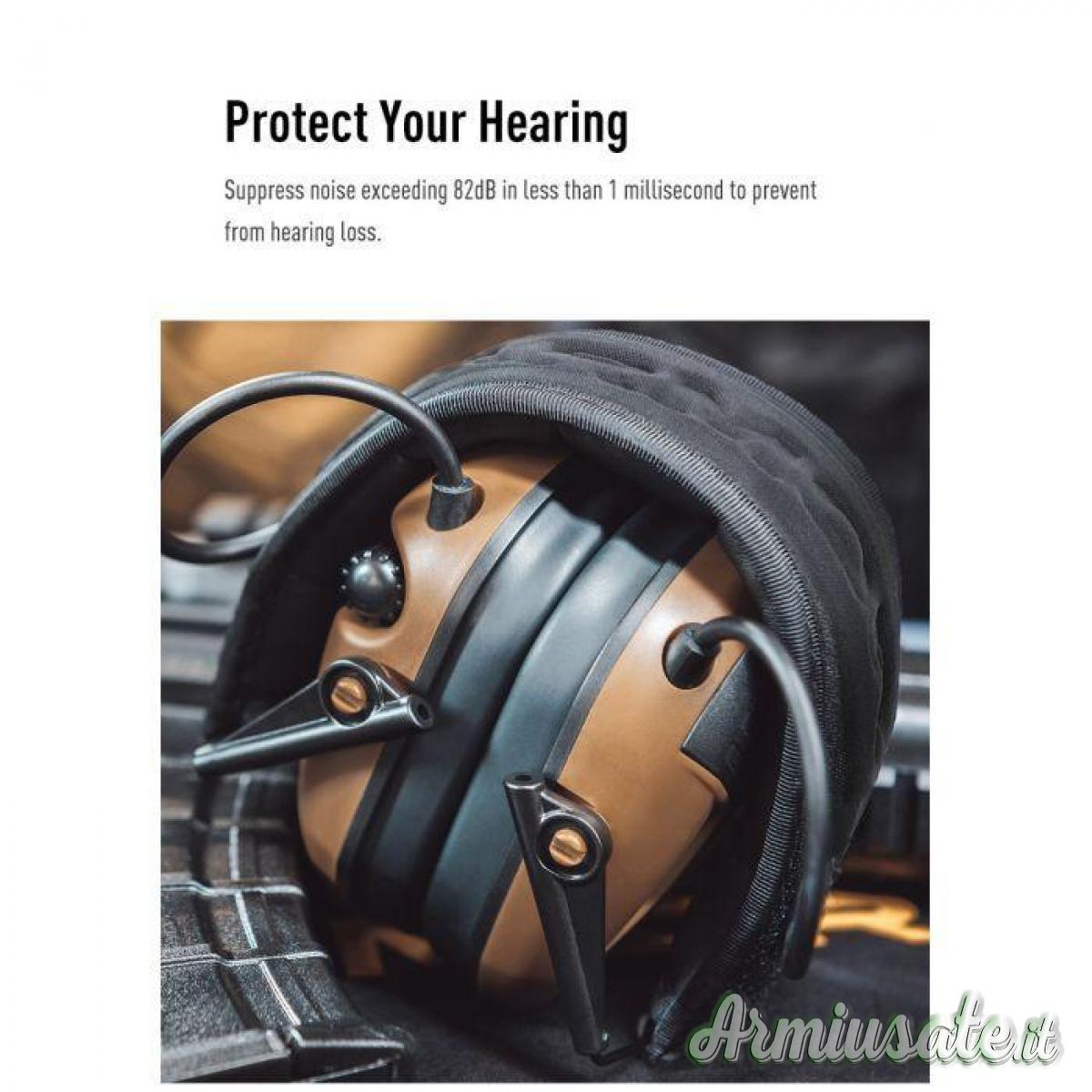 La diversità delle funzionalità è un'altra pietra miliare dell'M300A, come dimostrano le sue molteplici modalità di pick-up. Ciascuna modalità è specificamente studiata per rispondere alle sfide di ambienti diversi, dalla vivace cacofonia di un cantiere alla quiete sfumata di una battuta di caccia. Questa adattabilità garantisce agli utenti un'esperienza di ascolto superiore, indipendentemente dall'ambiente circostante, con la certezza che la protezione acustica può passare senza sforzo da uno scenario all'altro. Tuttavia, la missione principale dell'M300A è quella di offrire un'eccezionale protezione dell'udito, grazie a una sofisticata funzione di soppressione delle onde che si attiva in meno di un millisecondo. Questa capacità di risposta rapida sopprime efficacemente i rumori dannosi che superano gli 82 dB, salvaguardando l'udito dell'utente dai potenziali danni causati da rumori improvvisi e forti, come gli spari. Nonostante questa potente protezione, l'M300A mantiene un'esperienza di ascolto chiara, assicurando che gli utenti rimangano in contatto con l'ambiente circostante senza il rischio di danni uditivi. Consapevole che il comfort e la vestibilità sono fondamentali per un uso prolungato, l'M300A ha un design che si adatta a un ampio spettro di dimensioni e forme della testa. La staffa regolabile e il comodo archetto, uniti al design compatto e pieghevole per una facile trasportabilità, rendono l'M300A una scelta versatile per chi cerca una protezione acustica affidabile senza compromettere il comfort o la praticità. Oltre a queste caratteristiche, l'EARMOR® M300A è ricco di specifiche che riflettono l'impegno per l'eccellenza e la soddisfazione dell'utente. Dal design ergonomico e dal Noise Reduction Rating (NRR) di 23dB alla capacità di amplificare il suono ambientale sopprimendo i rumori pericolosi, l'M300A è una testimonianza del potere dell'ingegneria innovativa. Caratteristiche aggiuntive come i cuscinetti sigillanti, il sistema di tracciamento vocale per una comunicazione chiara, il grado di impermeabilità IPX5 e la funzione di spegnimento automatico dopo 4 ore di inattività dimostrano ulteriormente la meticolosa attenzione ai dettagli che contraddistingue il marchio EARMOR®.