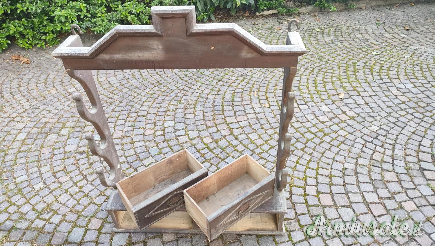 Vendo come la vedete in foto antica fuciliera pensile in legno dolce forse pioppo, non saprei, della fine dell'ottocento, integra e sana solo da pulire e lucidare. La struttura è rustica nello stile dei vecchi cascinale dell:epoca, leggera da appendere e dotata di due cassetti per buffetteria.