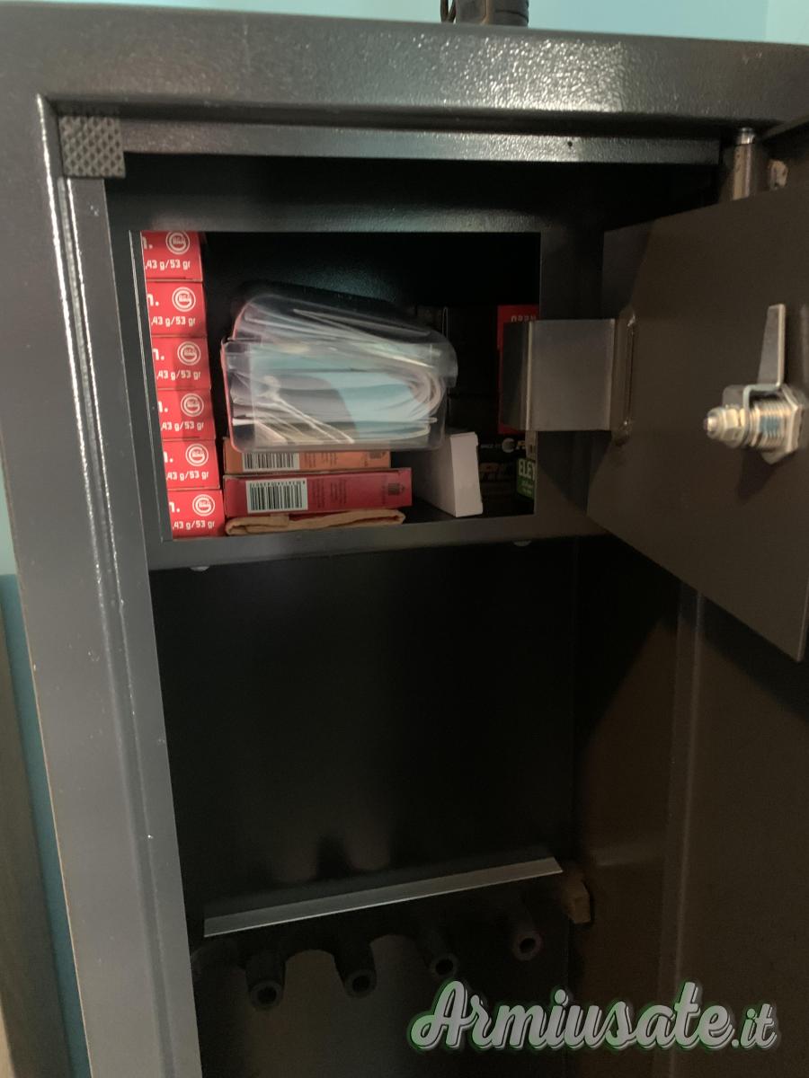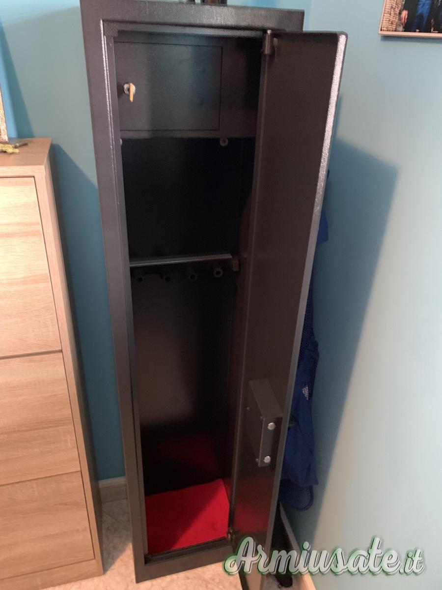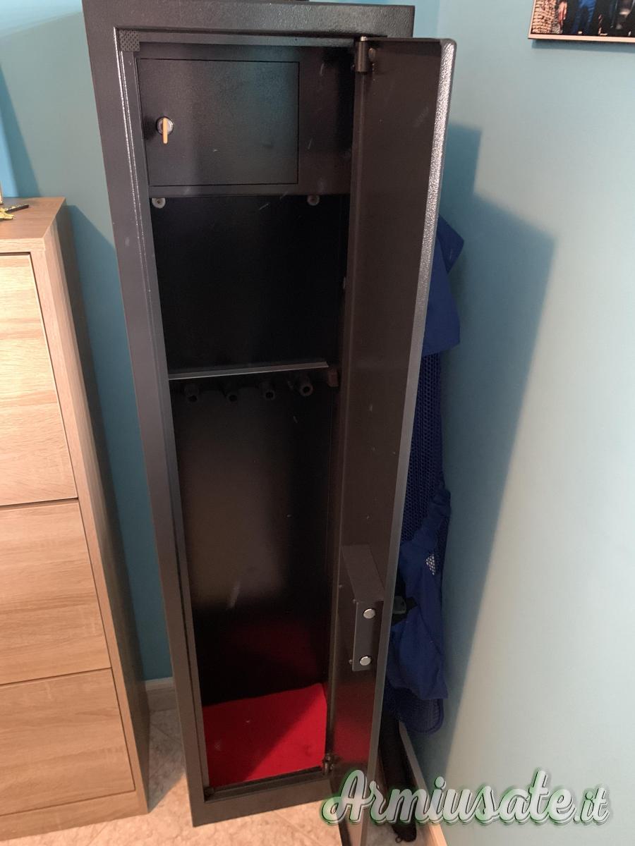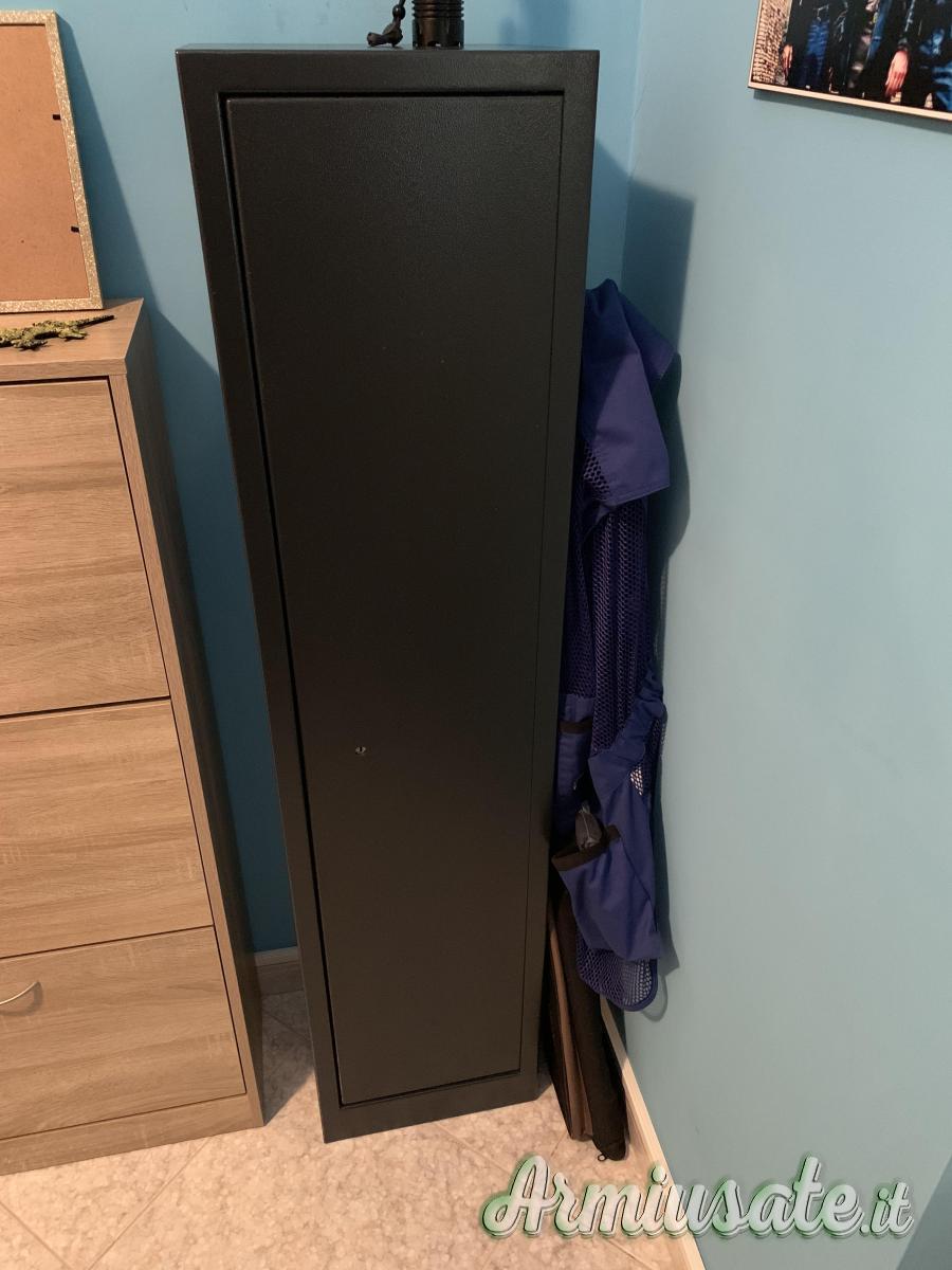 Vendo fuciliera 5 posti come nuova nessun segno o graffio, vendo per fuciliera più grande, misure esterne altezza 145 profonditá 30 larghezza 35 spessore lamiera 2.5mm presenta tesoretto a sua volta con serratura. Misure tesoretto interno altezza 20 larghezza 32 profonditá 20 misure utili interne posto fucili altezza 125 larghezza 32 profonditá 25. Prezzo leggermente trattabile zona Aprilia ritiro a mano o posso anche spedire con 20€. Pagamenti accettati: contanti, bonifico o ricarica postepay.
