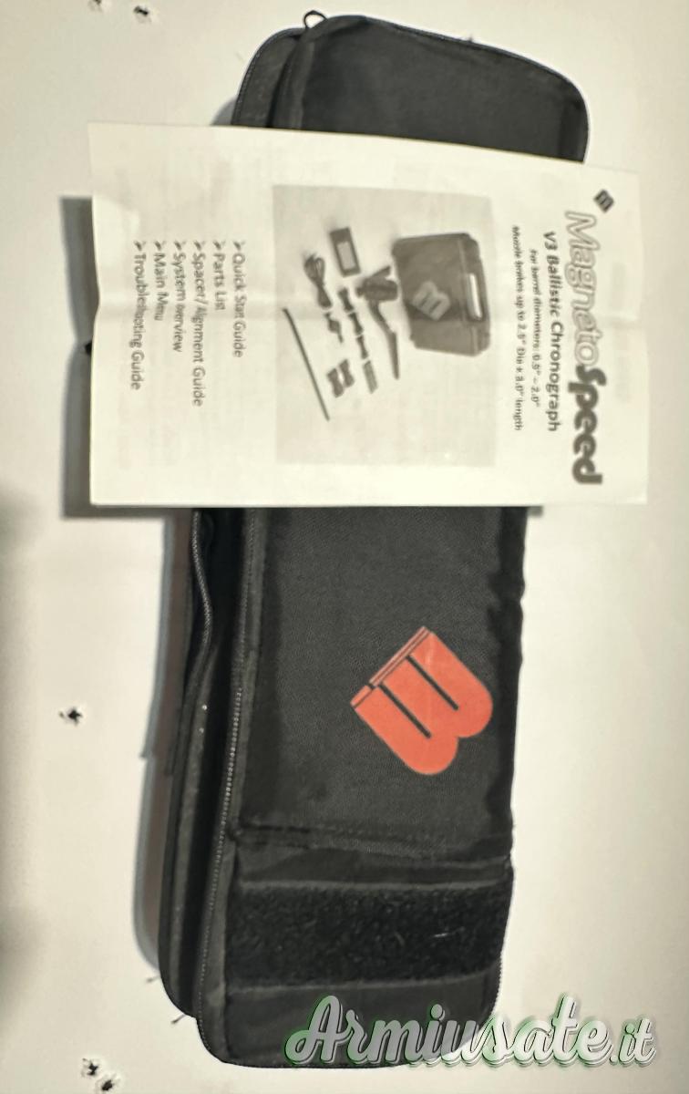 Cronografo magnetospeed v3 pari al nuovo, usato 2 volte. Completo di custodia e adattatori per ogni diametro di canna. Facile da montare e veloce nella lettura velocità. Per info 3478832426