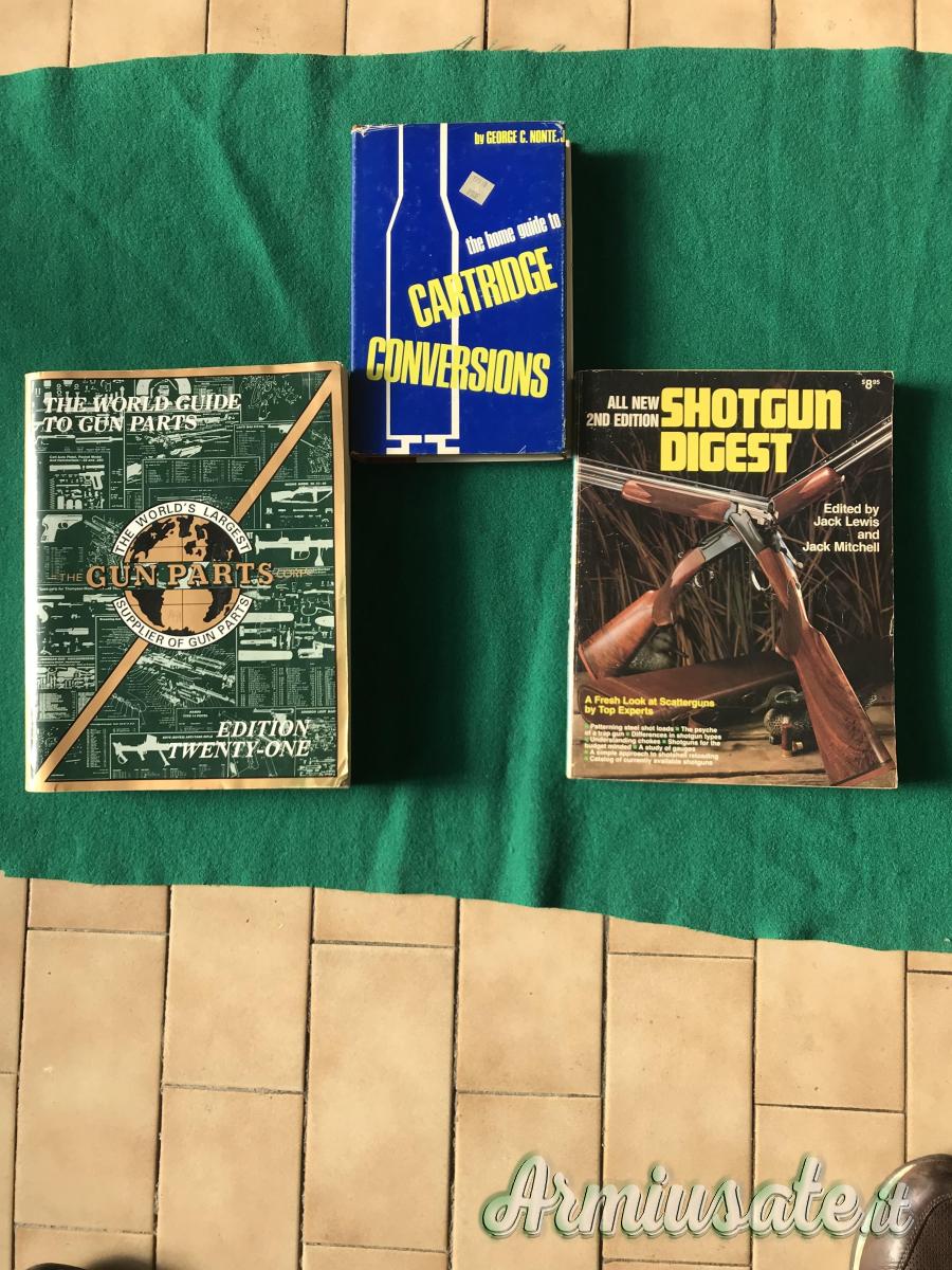 Cedo , possibilmente in blocco, 9 libri di caccia, animali, armi. I libri sono scritti in italiano ed in inglese