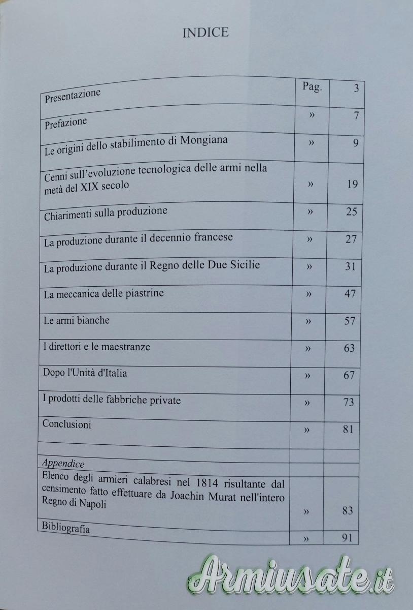 Interessante libretto, con date storiche, sulle armi fabbricate a Mongiana, di Roberto Avati.