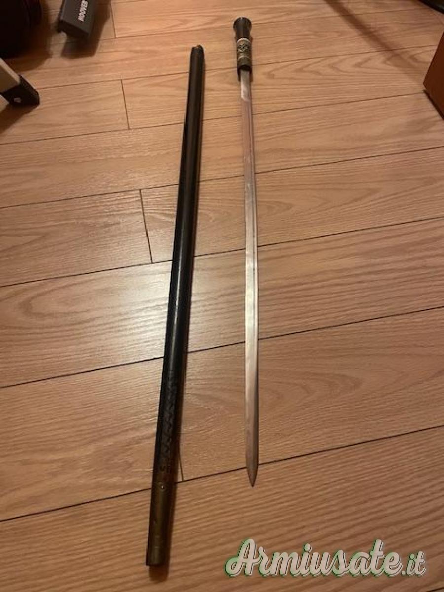 DIMENSIONI: lunghezza totale 92,5 cm., lunghezza lama 65,7 cm., lunghezza impugnatura 15 cm.