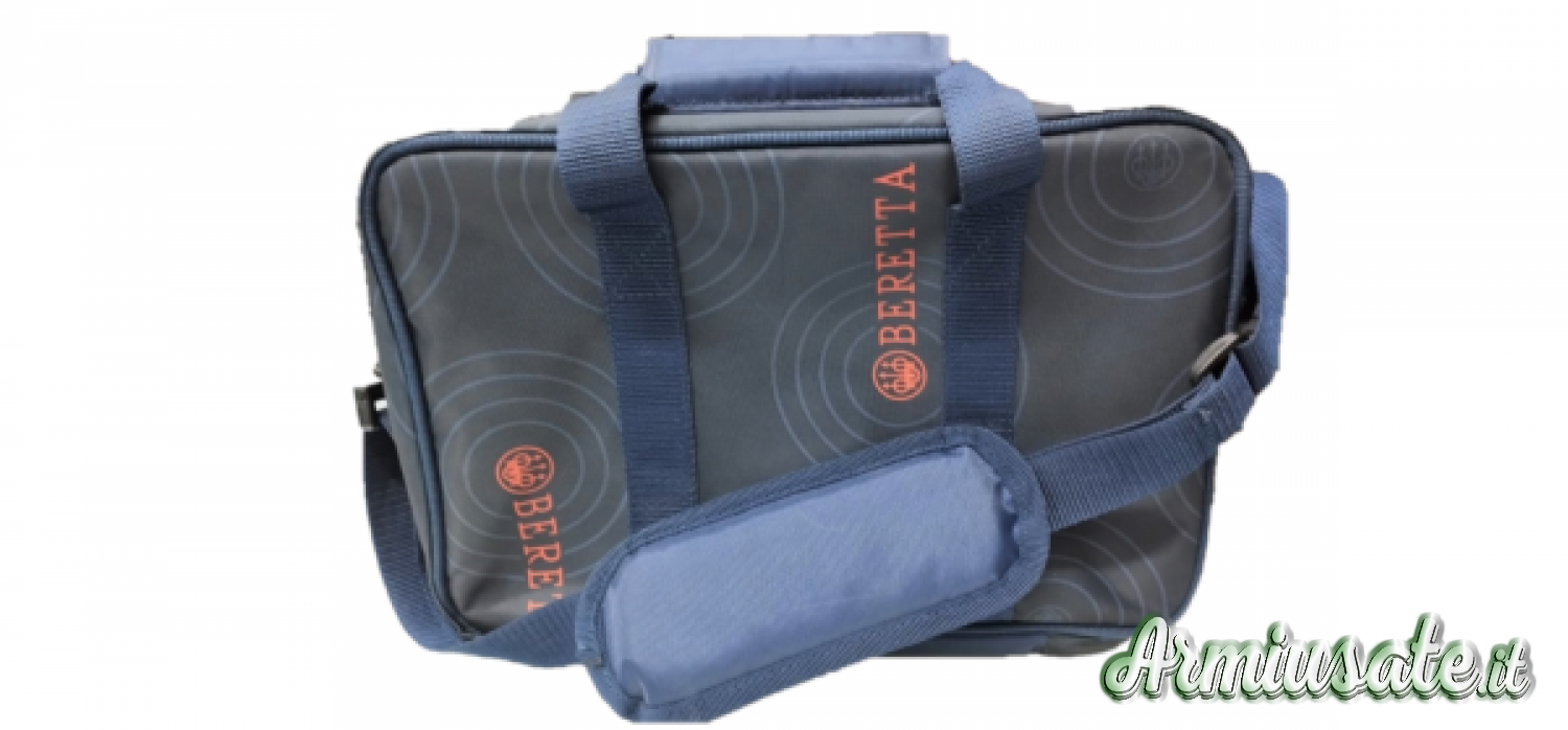Borsa portacartucce Beretta in resistente tessuto Pes, idrorepellente, di colore blu. Dotata di scomparto unico chiudibile con cerniera a doppio cursore che può contenere fino a 100 cartucce calibro 12. Le doppie maniglie rendono il trasporto più semplice e comodo.