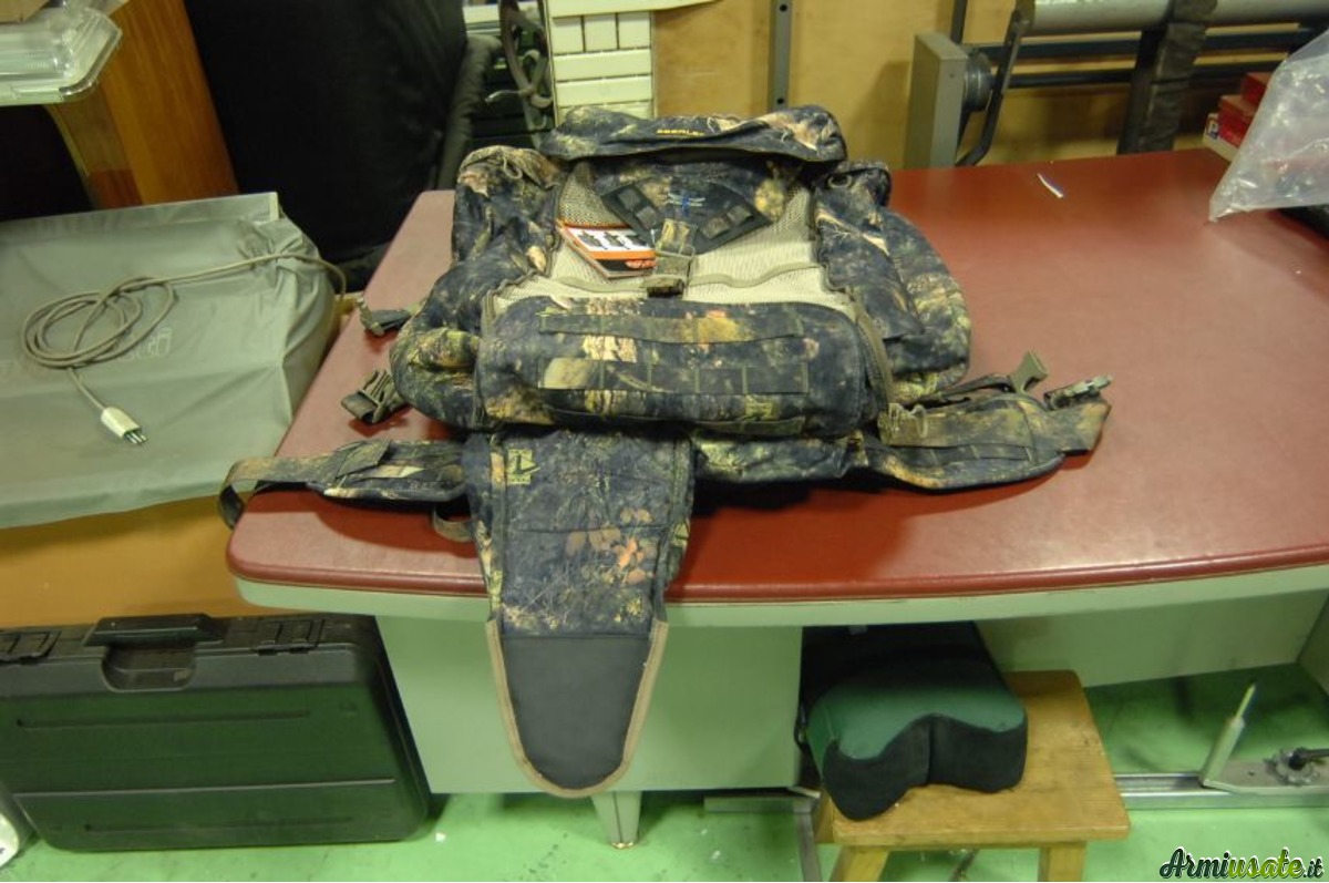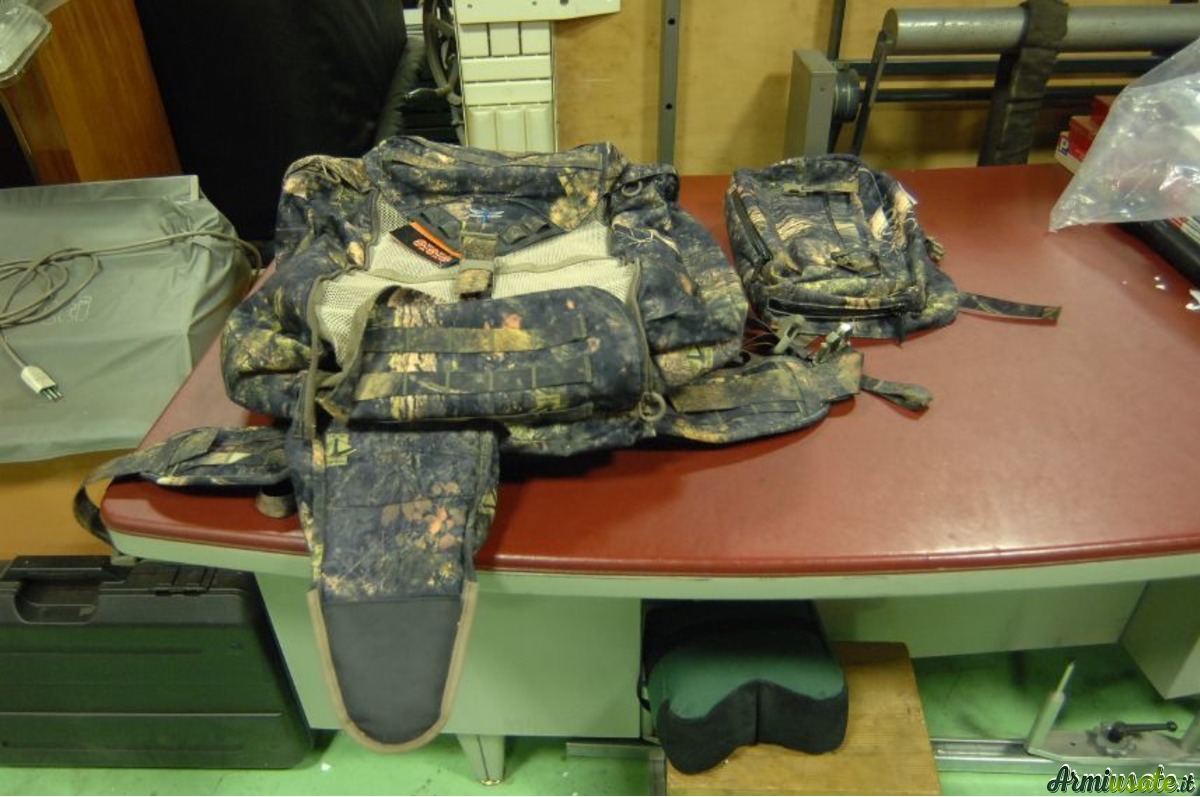 IL PRODOTTO E' DOTATO DI SACCA PORTA CARABINA, POSTA TRA LO SCHIENALE ED IL VANO DI CARICO, DI DIMENSIONI PIU' PICCOLE RISPETTO AGLI ZAINI TATTICI, PER CUI, LATERALMENTE ALLA STESSA SONO POSTE DUE SACCHE APRIBILI TRAMITE CERNIERA ADATTE A CONTENERE LE MUNIZIONI PIUTTOSTO CHE IL BINOCOLO O LA BORRACCIA.