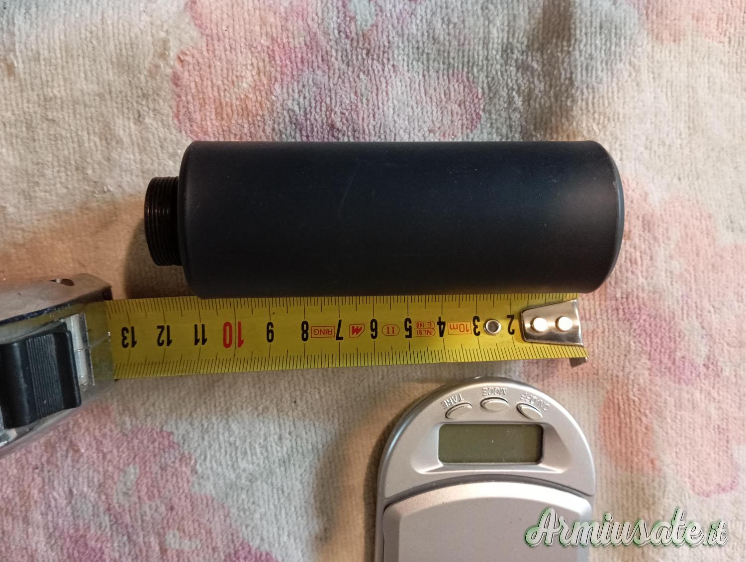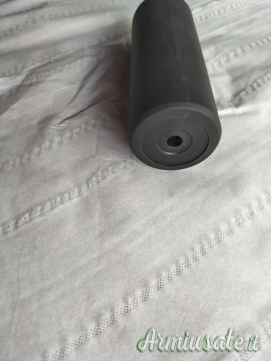 per carabina Prophet libera vendita cal, 5,5 lungo 110 mm diametro 40 mm, si avvita direttamente al tubo copri canna, non serve riduzione, leggerissimo, ricoperto con guaina gommosa, pesa poco più di 1 etto
