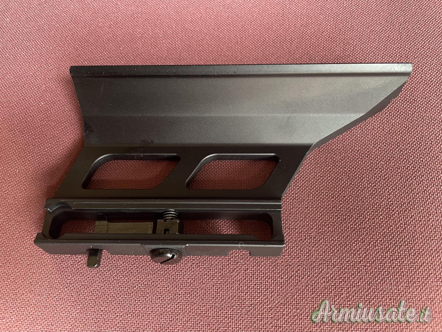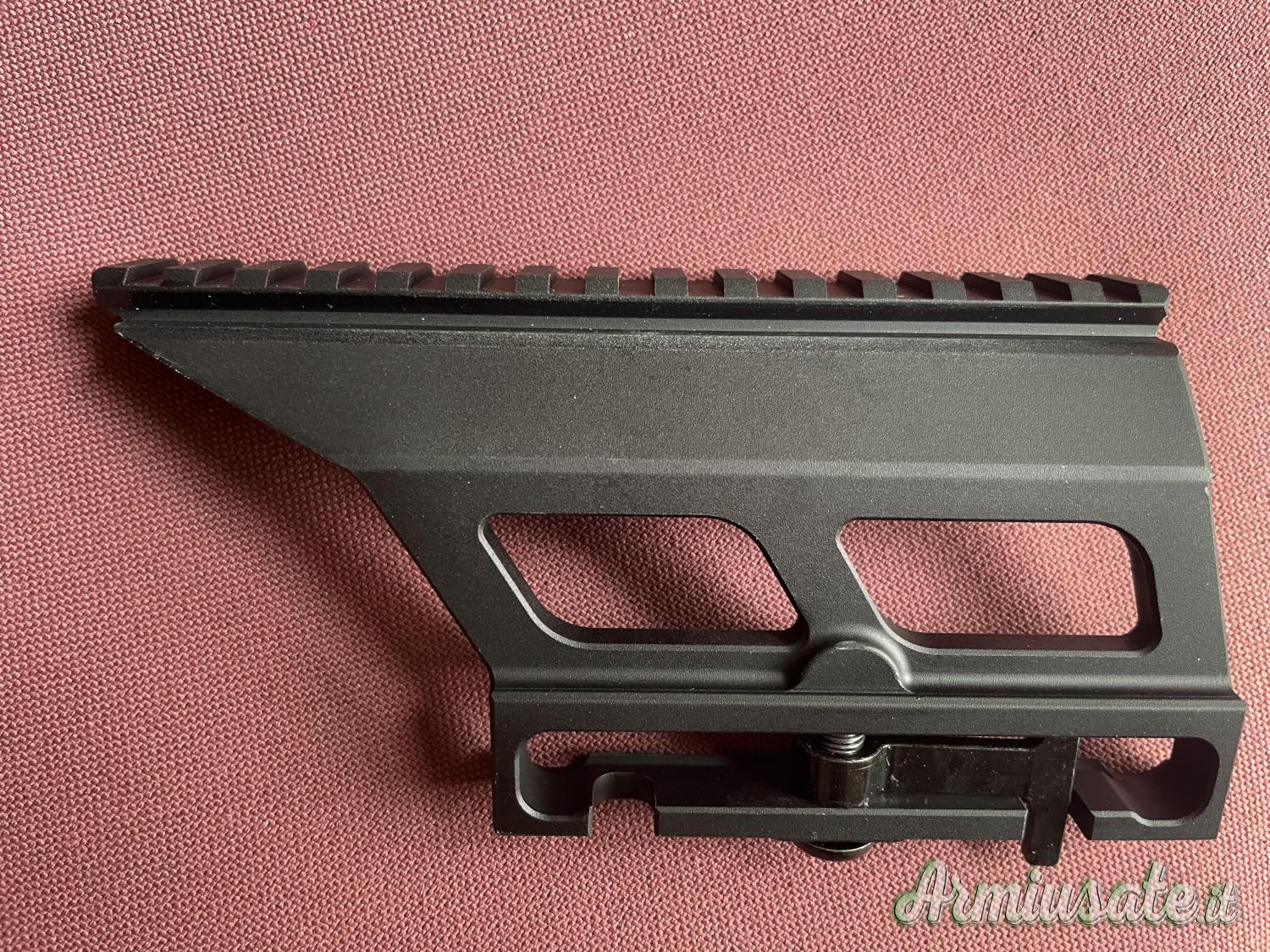 guida picatinny 20mm MIL-STD 1913, adatta a qualsiasi montatura picatinny, consente l'utilizzo di cannocchiali, visori notturni o mirini a punto rosso.