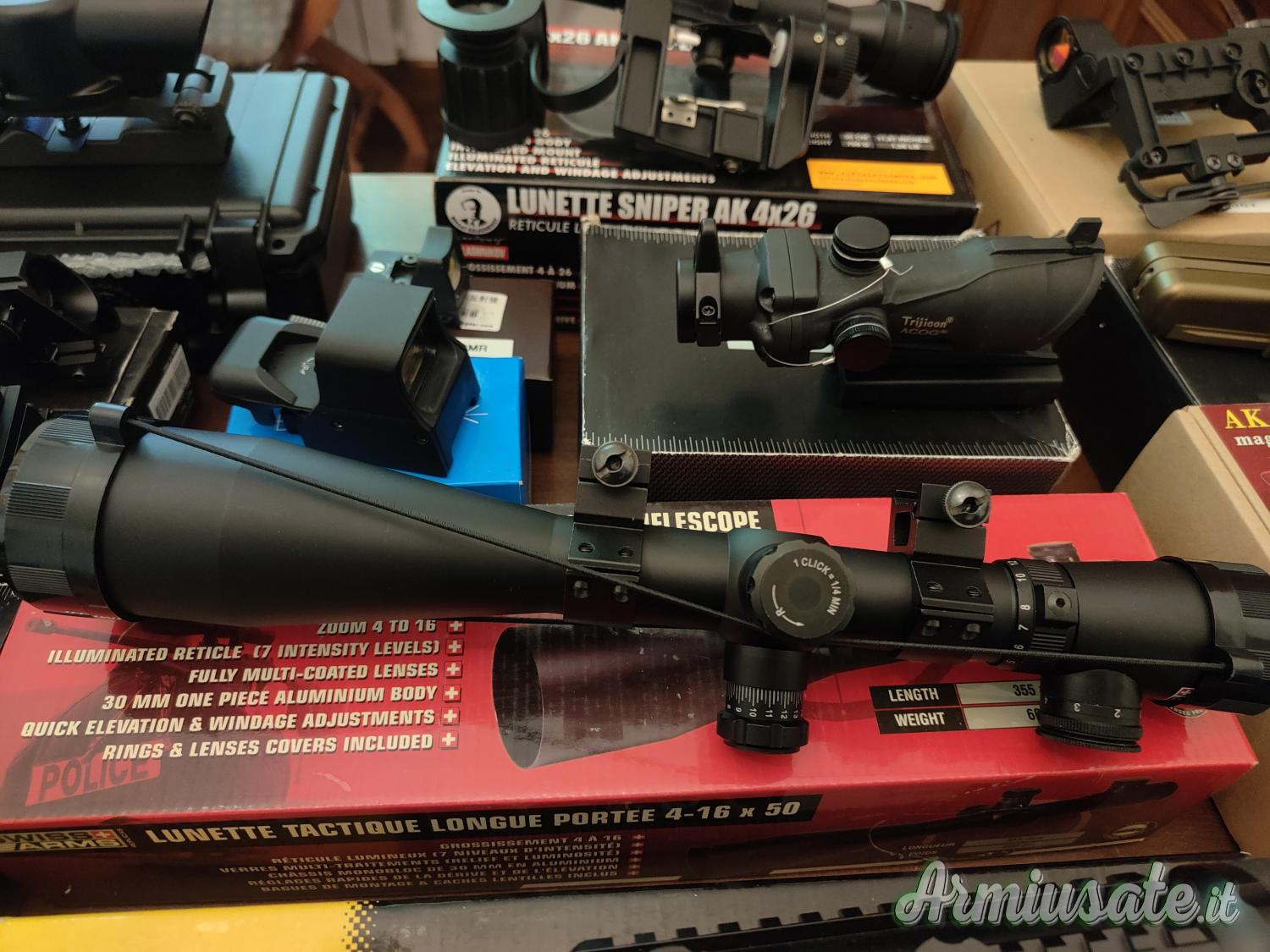 Acog, susat, posp, cobra dot. Bipiede Marui, caricatori maggiorati per Ak e Marui, lanciagranate M203 e gp-30