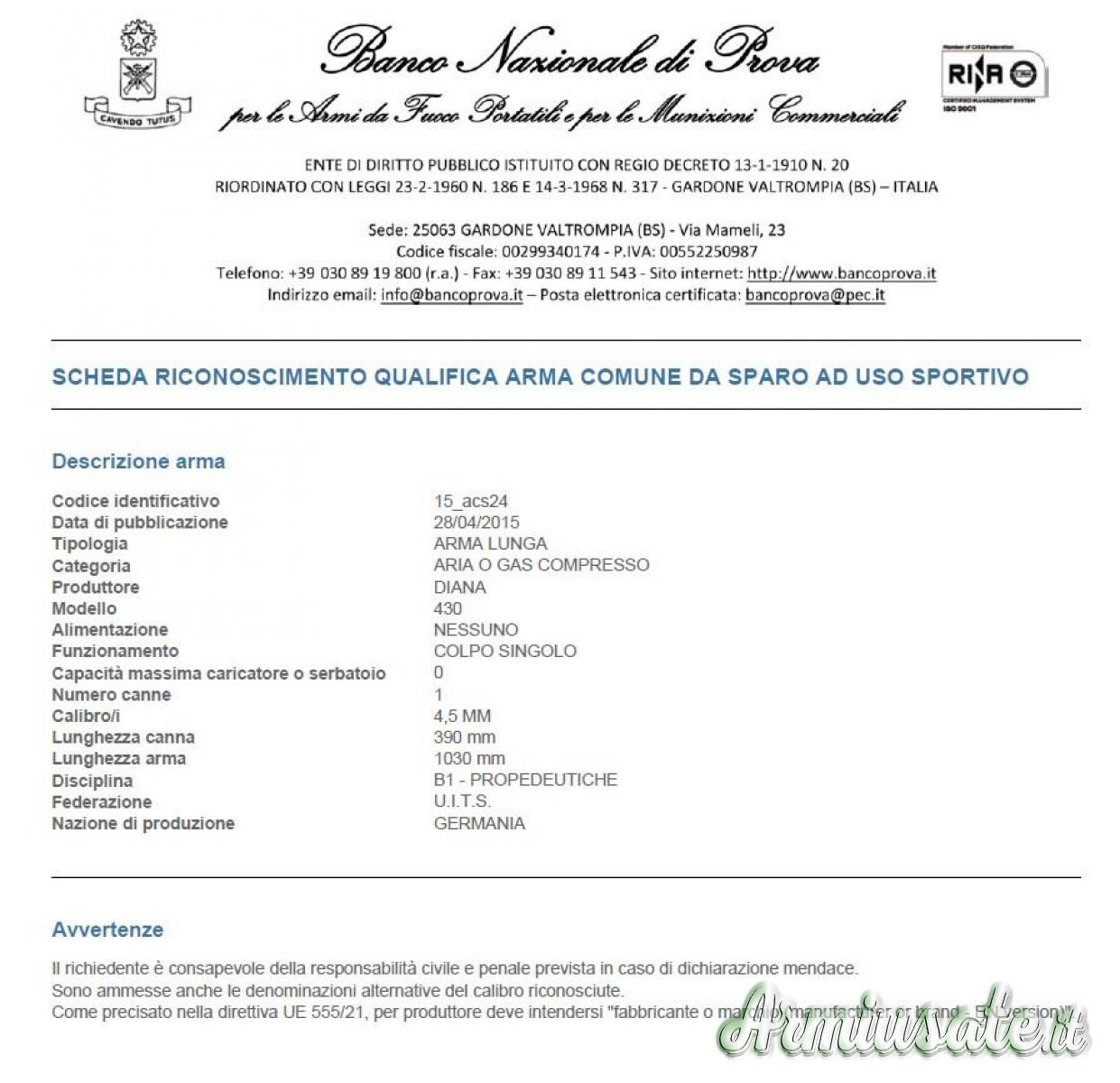 ARMA ANCORA IMPORTATA DA PAGANINI ANCHE IN 5.5 MM( VEDI CATALOGO ALLEGATO)