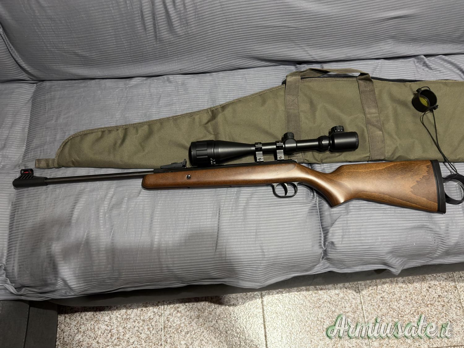 Carabina tenuta bellissima e con canna basculante, regalo due confezioni di pallini e sacca.