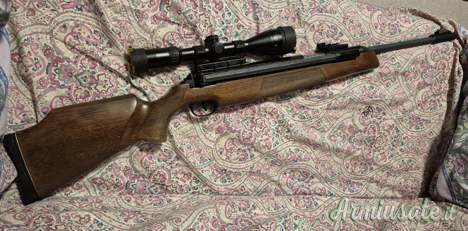 Carabina Aria Compressa Tutta Potenza, Diana mod. 54 con rinculo ammortizzato, calibro 4,5 24j del 2001, perfettamente funzionante con piccoli segni di usura sulla canna, stante il tempo trascorso. È corredata di cannocchiale Nikko Stirling Gold Crown Air king