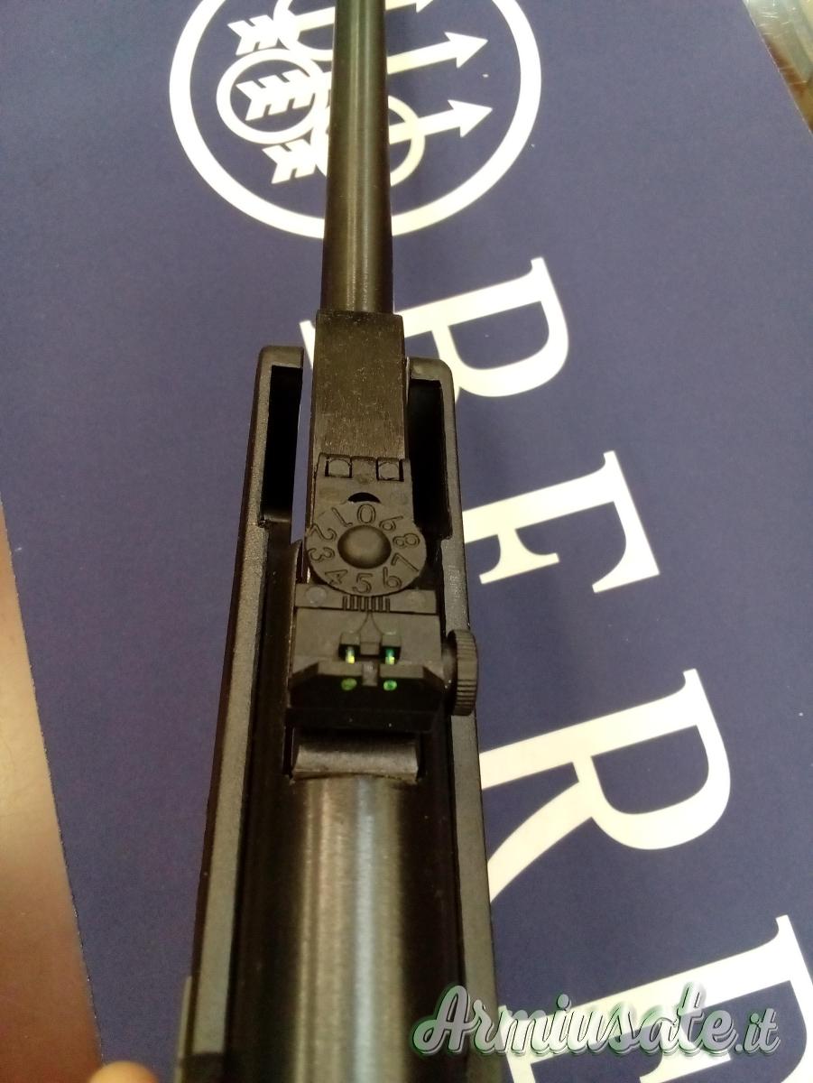 Costruita interamente in acciaio brunito; sicura automatica, mire regolabili con inserti in fibra ottica e slitta portaottica da 11mm.
