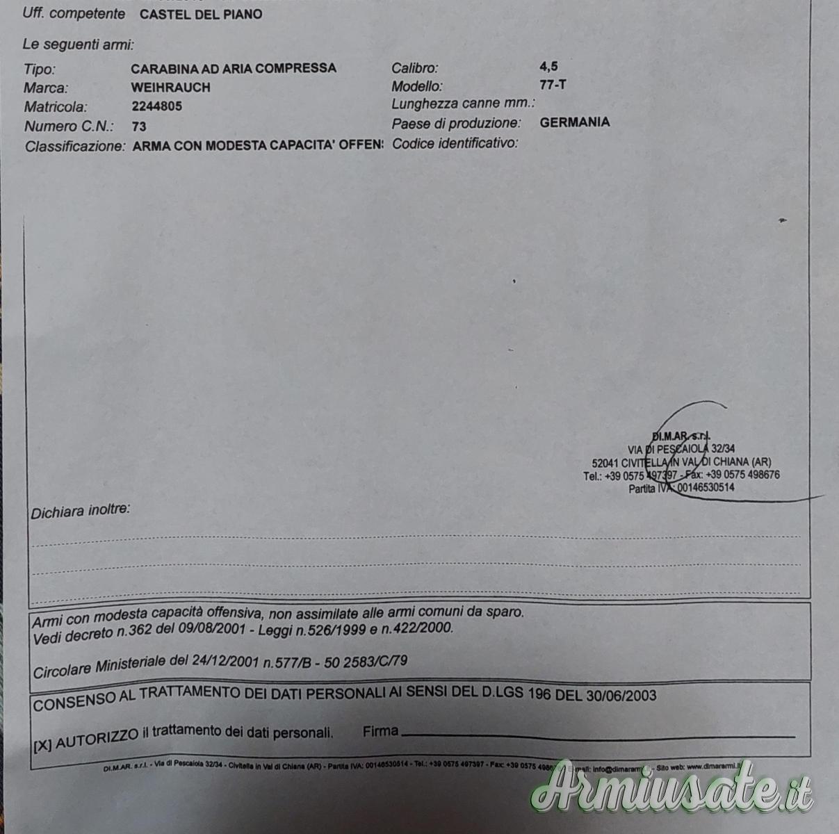 | Marchio Armi | Weihrauch |