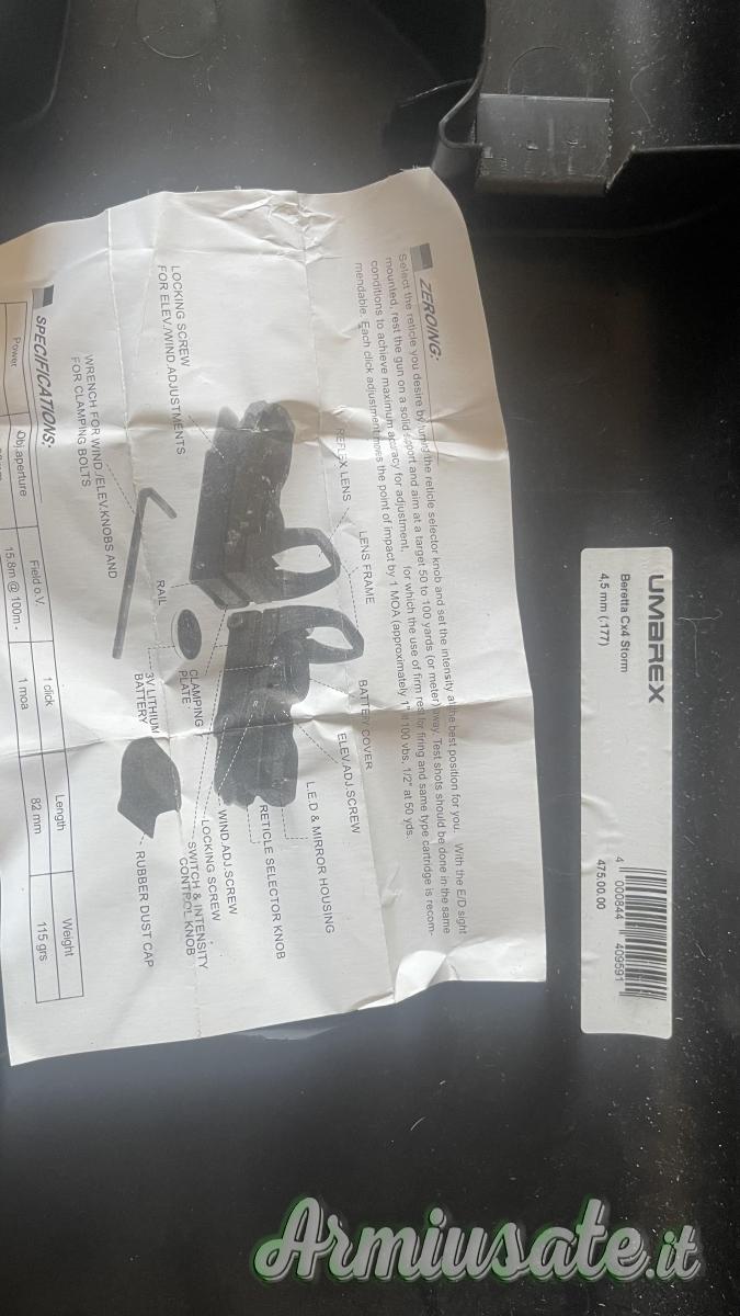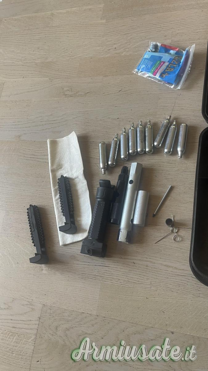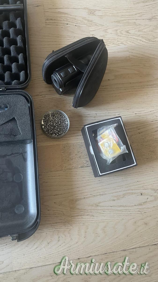 Cartucce gas,proiettili,rilevatore distanza,mirino ottico con laser.