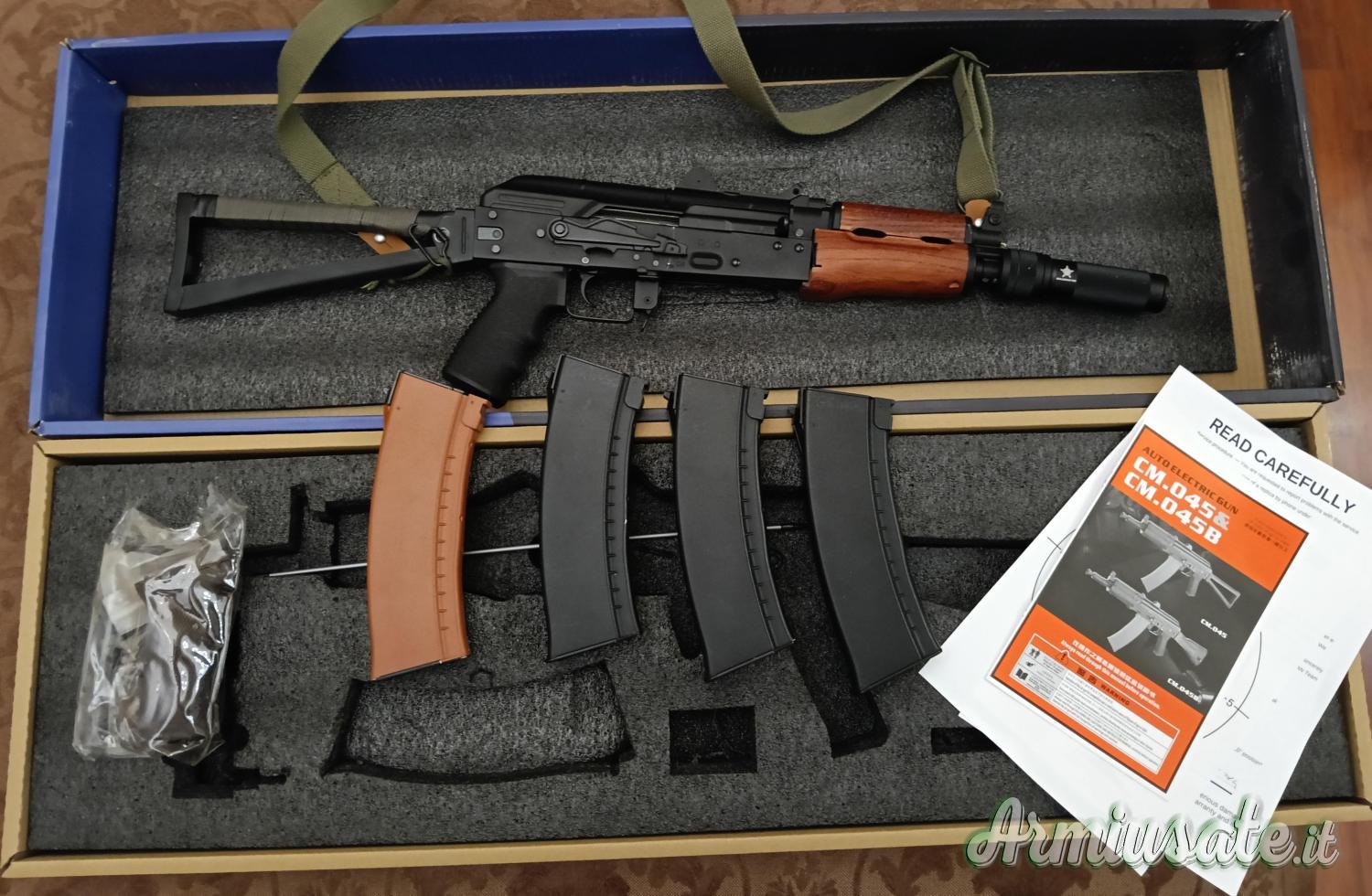 Ak74u della cyma usato tre volte con 4 caricatori di cui 3 monofilari, leva selettrice maggiorata, cinghia, silenziatore, grip sagomata. Più grip originale, tromboncino e leva selettore normale all'interno della confezione originale. Cedo a mano zona Milano centro. Non spedisco