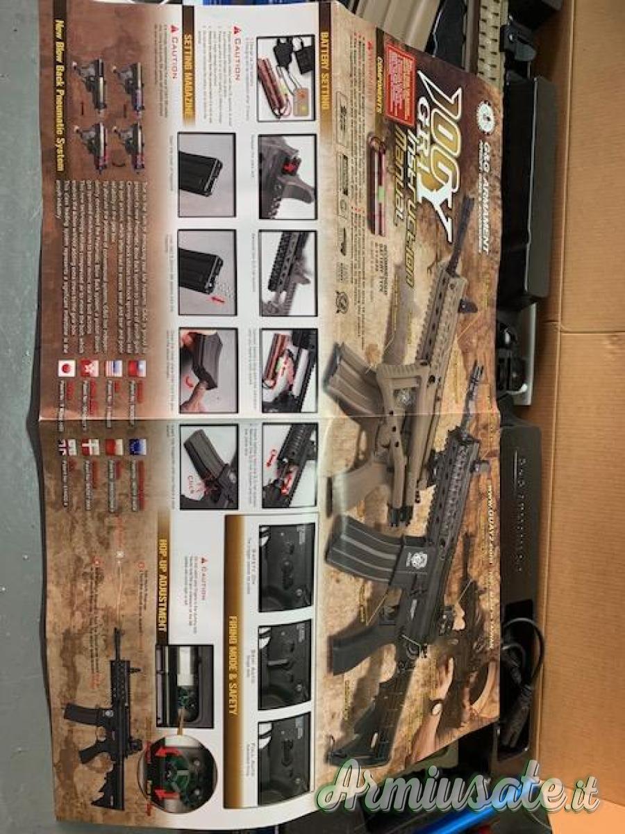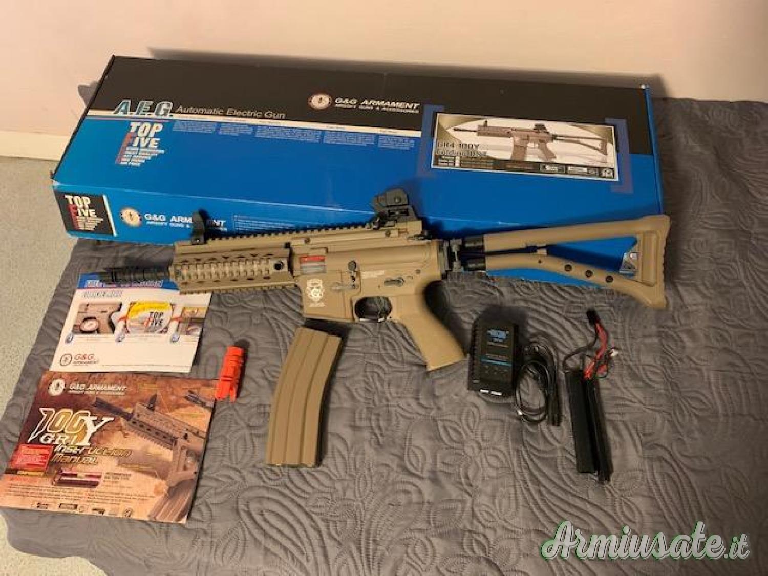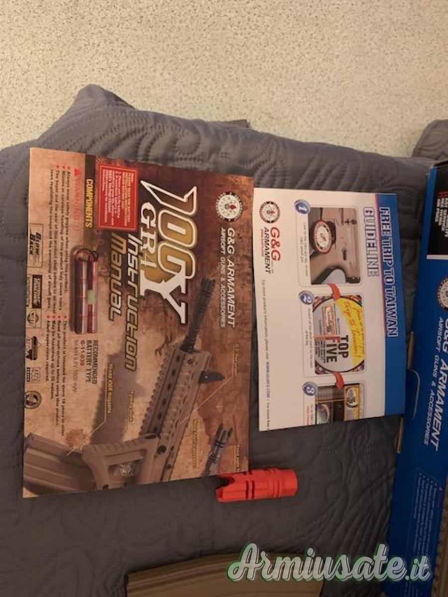 GR4 100Y SCARRELLANTE MARCA G&G DI ULTIMA GENERAZIONE COLORE TANDOTATO DI PNEUMATIC BLOWBACK SYSTEM (SISTEMA PNEUMATICO DI SCARELLAMENTO E PICCOLO RINCULO)BODY IN ABS CON LOGO G&G STAMPATO GEARBOX IN METALLO VER 3 CALCIO RIPIEGABILE. 4 SLITTE WEAVER PER ACCESSORI.CARATTERISTICHE : MOTORE HI-TORQUE ALBERO LUNGO DA 16,000 GIRI AL MINUTO BOCCOLE DA 8 mm IN OTTONE PISTONE IN ABS RINFORZATO TESTA PISTONE IN ABS CILINDRO IN ALLUMINIO TESTA CILINDRO IN ABS MOLLA DA 1 JOULE SPINGI PALLINI IN ABS CANNA INTERNA IN OTTONE DA 233mm SISTEMA HOP UP REGOLABILE. FILI BATTERI NEL RIS. ATTACCO MINI TAMIYASPARA IN AUTOMATICO, COLPO SINGOLO O RAFFICA DISTANZA TIRO 40/ 50 METRI SPAR 90 / 100 ms CON PALLINO DA 0,20 gr CARICATORE MAGGIORATO DA 450 COLPI. SPARA PALLINI DA 6 mm DI TUTTI I TIPI.LA CONFEZIONE COMPRENDE MITRA CARICATORE MAGGIORATO IN METALLO DA 450 COLPI ASTA PULISCI CANNA PALLINI DA 0,20 GR ISTRUZIONI D'USODIMENSIONI: PESO 2423g, CARICA BATTERIE""""BATTERIA (esistente ma non buona) NON INCLUSI """"sparato non piu di 200 pallini IN SCATOLA spedizione 10 €