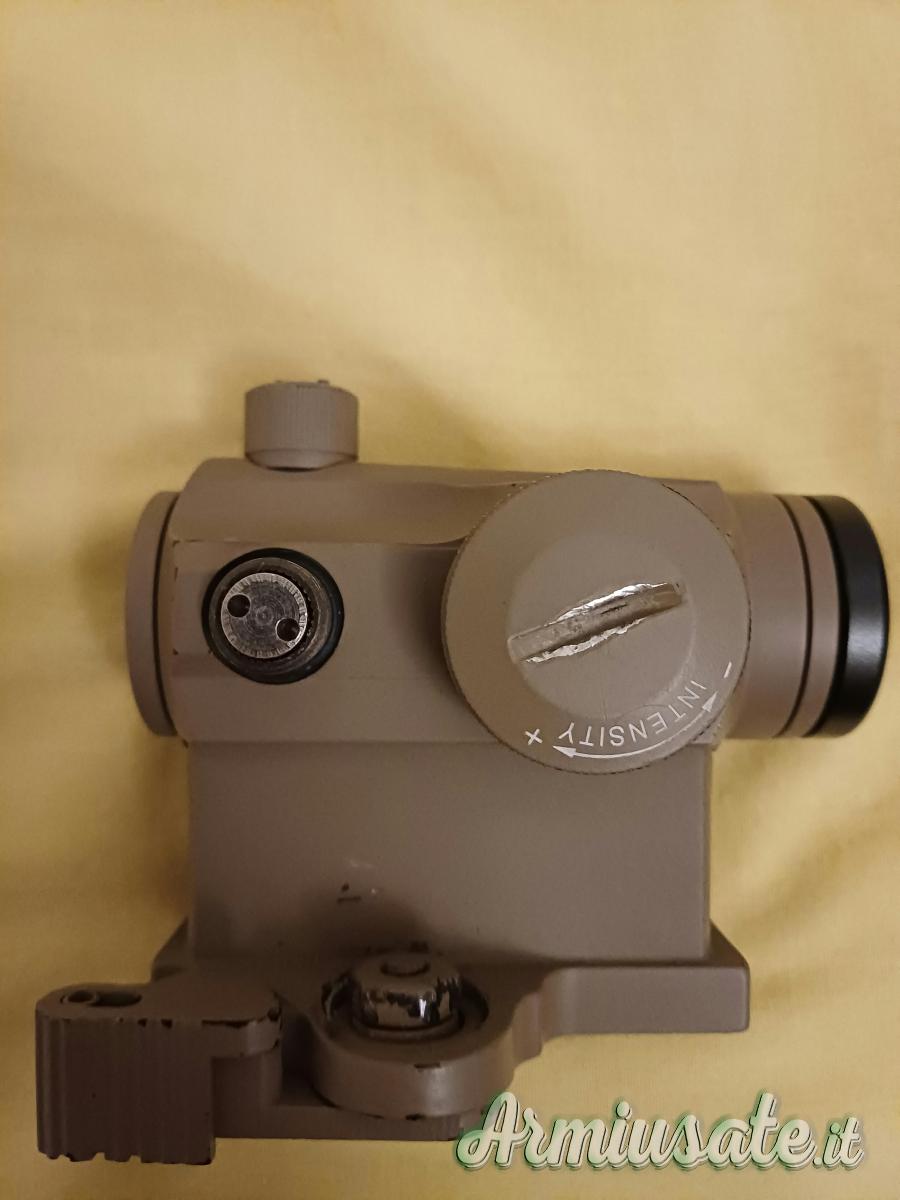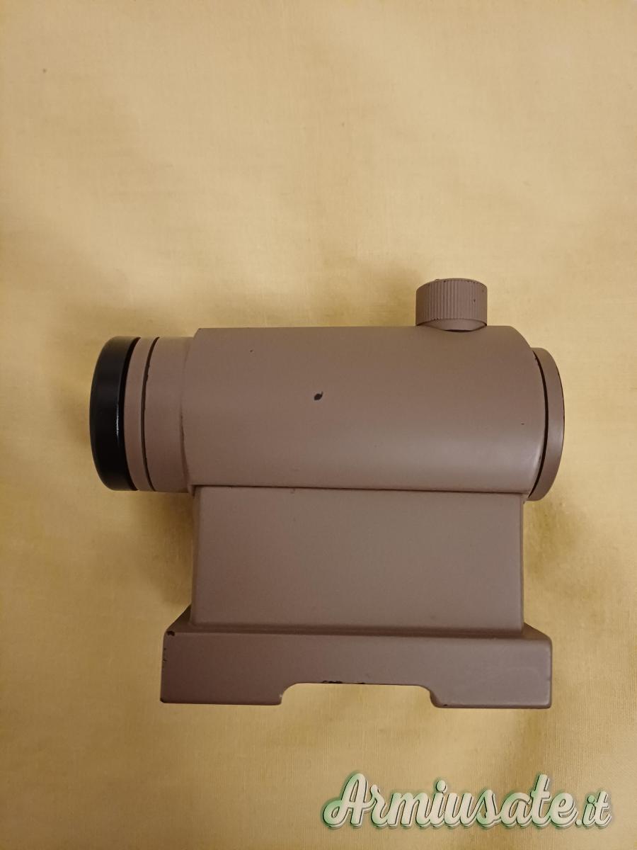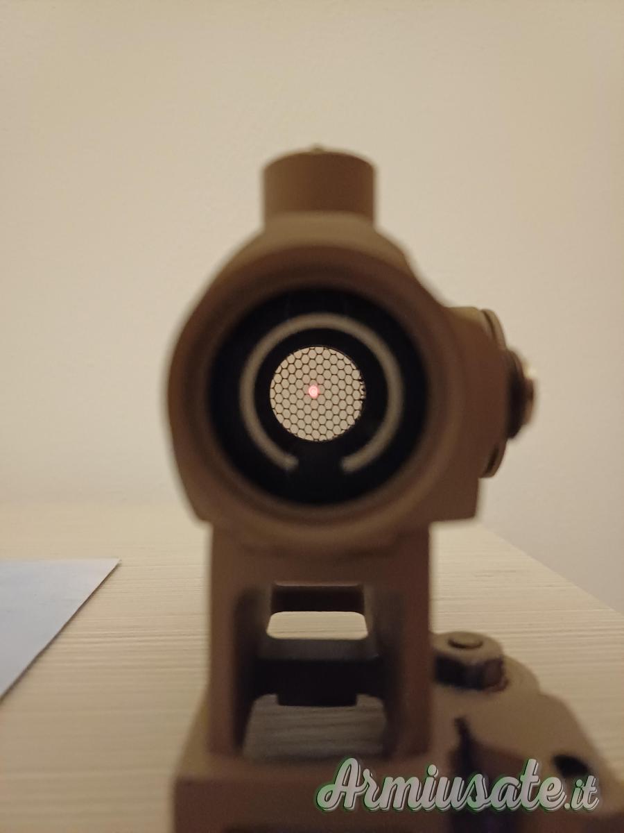 Insieme alla replica vendo il mirino della aimo rd1, ha 5 intensità di rosso e 5 intensità di verde (nelle foto entrambi i colori sono al livello massimo di intensità) con killflash / protezione pallino sempre della aimo.