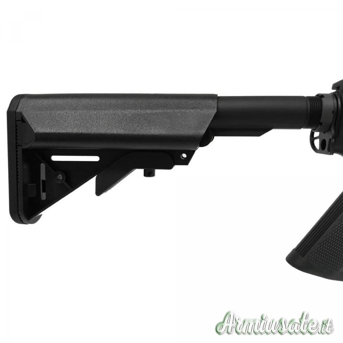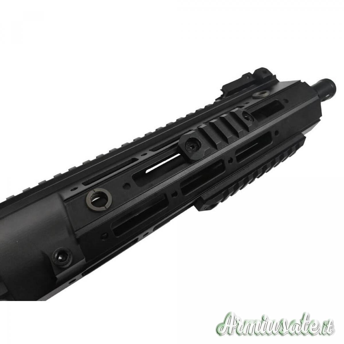 Passando all'estetica, modello FULL METAL di altissima qualità, presenta un upper RAHG type in alluminio scavato dal pieno in CNC da 10.5" con outer barrel da 10.5", body nero con Marchi realistici laser engraved, asta di armamento in metallo con bolt catch funzionante, Spegni fiamma tipo classic, slitta Picatinny da 22mm che percorre tutta la lunghezza del RIS+UPPER RECEIVER, tacche di mira FLIP UP e calcio Crane Black a 5 posizioni.