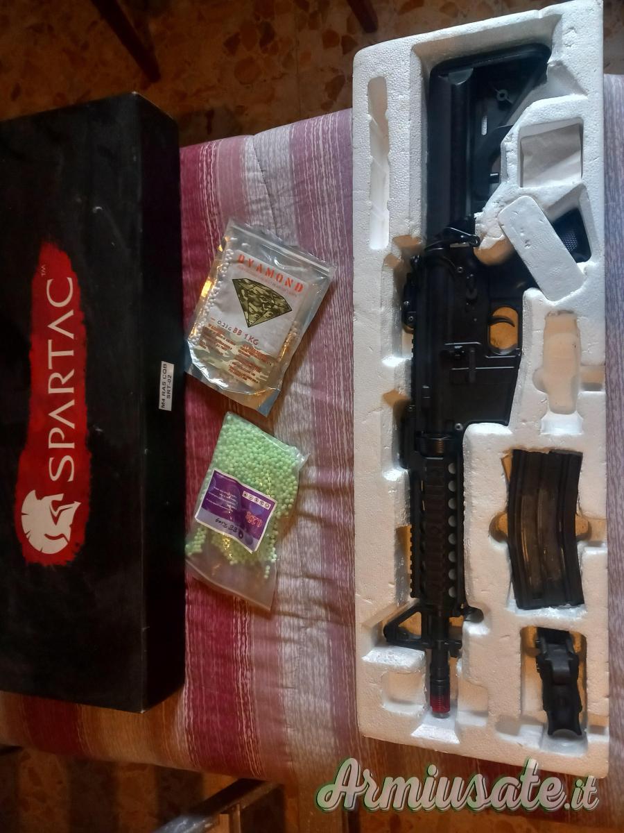 replica M4 RAS CQB SRT 02 usato 2 volte condizioni quasi nuovo tutto originale, impugnatura, 2 sacchi di piombini, batteria funzionante.