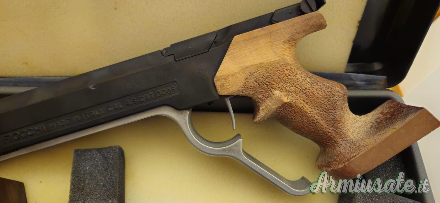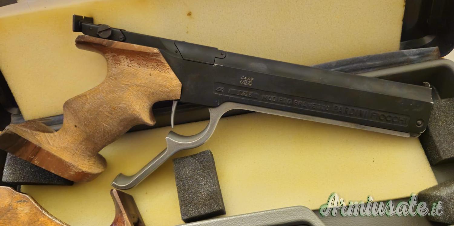 Molto rara (1979-1989), arriva da collezionista, condizioni perfette, scatola originale, doppia impugnatura originale Pardini in legno - PER TIRATORI MANCINI (SINISTRA).