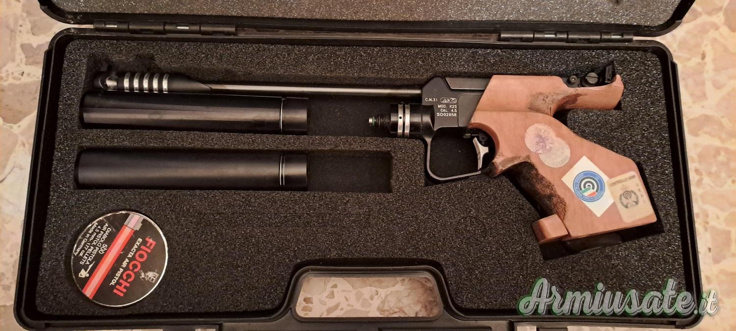 Vendesi pistola ad aria compressa in perfette condizioni, funzionante, nella custodia originale, libretto istruzioni, due bombolette e impugnatura per mano piccola.
