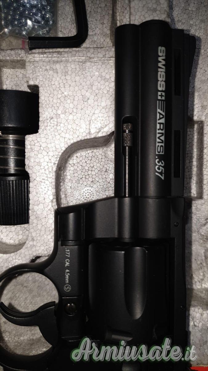 Vendo revolver co2 marca SWISS ARMS, modello 357 - 4", cal. .4,5 mm, compreso due confezioni di finti colpi, 2 confezioni di pallini e due confezioni di bombolette, prezzo €.100,00 - PERFETTA ! tenuta in collezione, eventuale spedizione + €.10,00. Altre foto a richiesta.