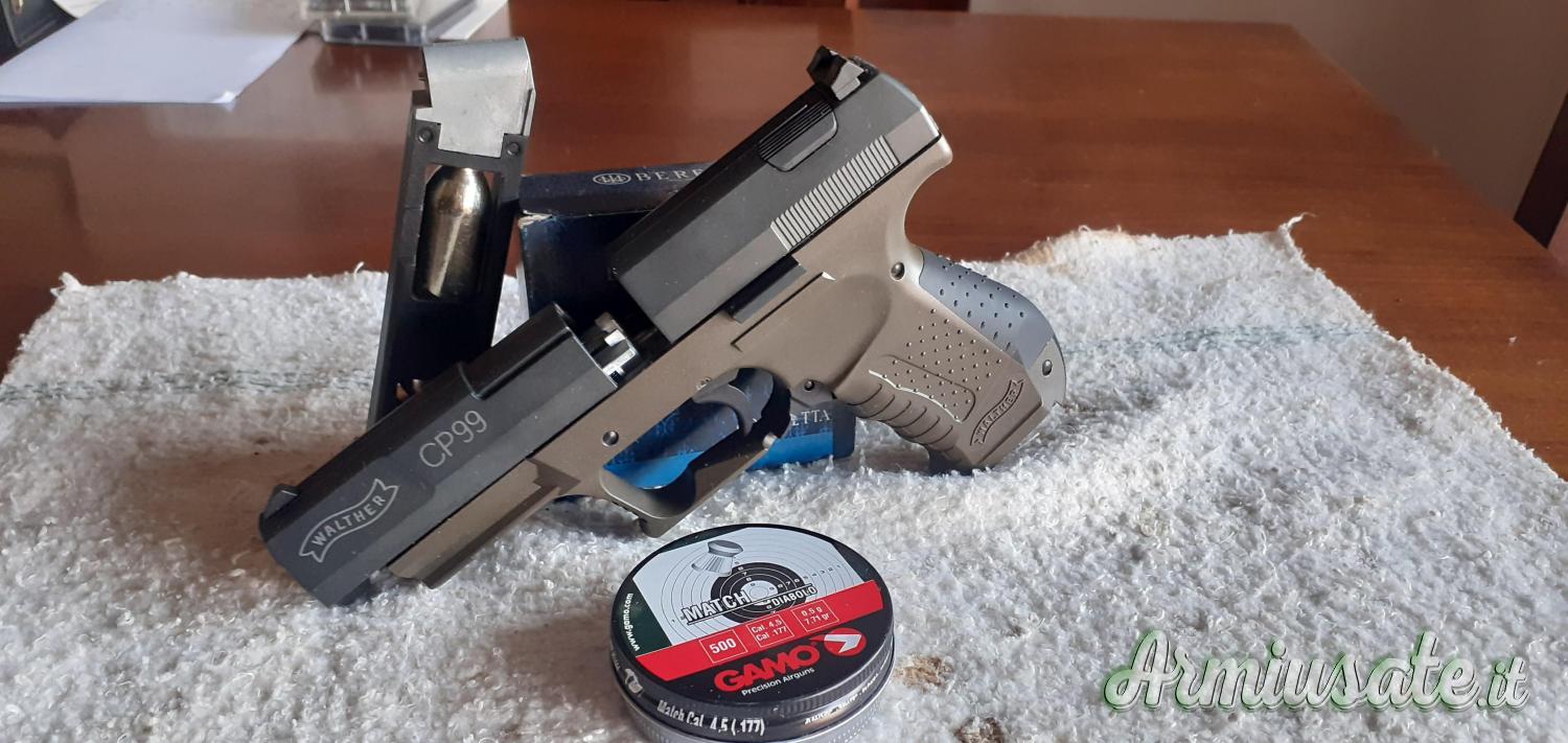 Completa di valigetta, libretto di istruzione, 2 elementi dorsale, 2 caricatori, due scatole munizioni Match Diablo, 1 munizioni gomma e 8 bombolette CO2 Beretta.
