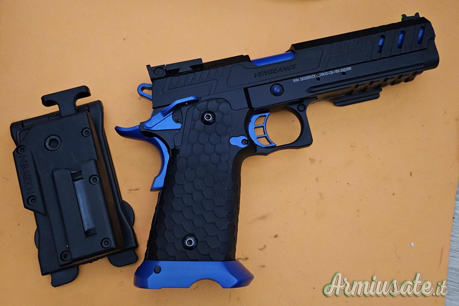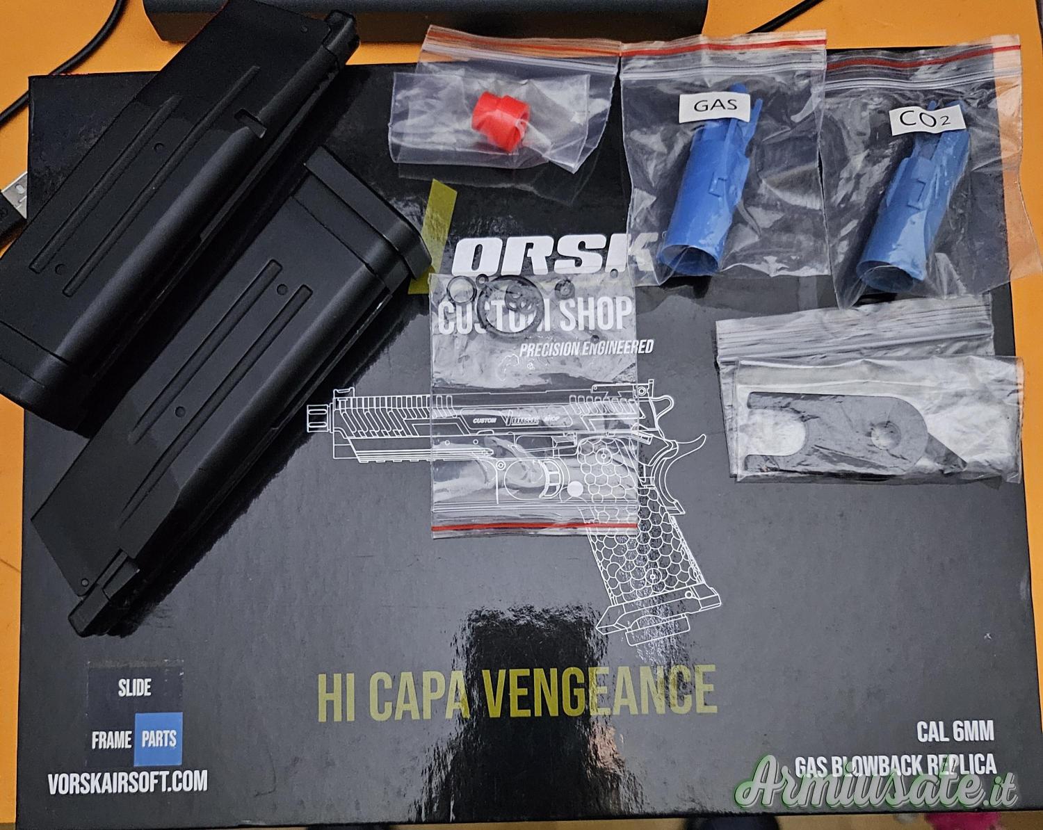 Vendo pari al nuovo mai utilizzata se non per prova, pistola a gas della Vorsk HI-Capa Vengeance, perfetta in tutto con tutta la dotazione originale completa,in più secondo caricatore originale Vorsk e attacco fondina della Novritsch valore del tutto 300 euro, io cedo tutto quanto elencato 170 euro, vero prezzo affare.
