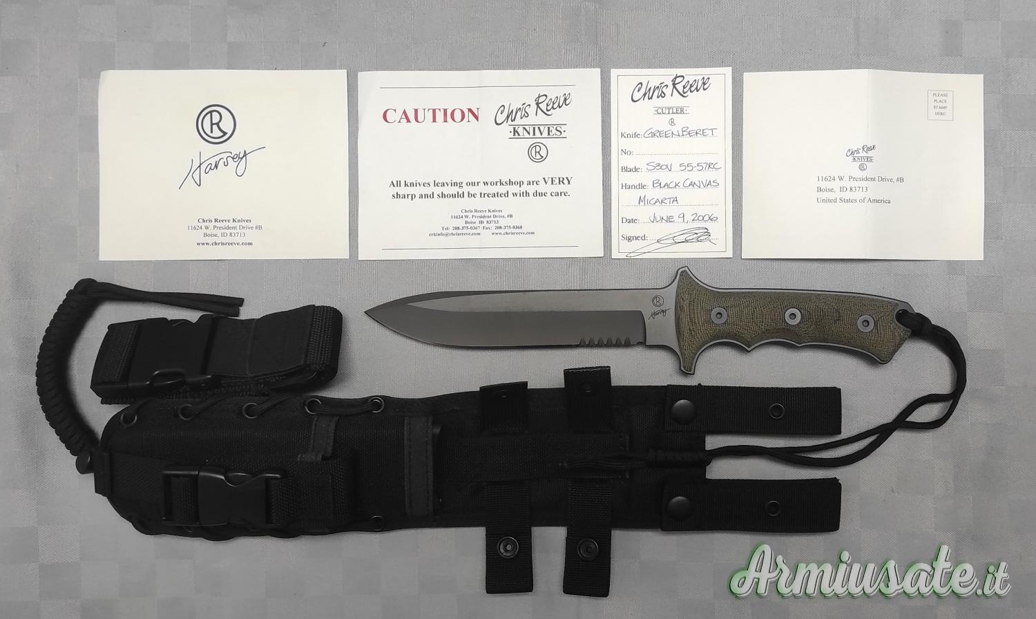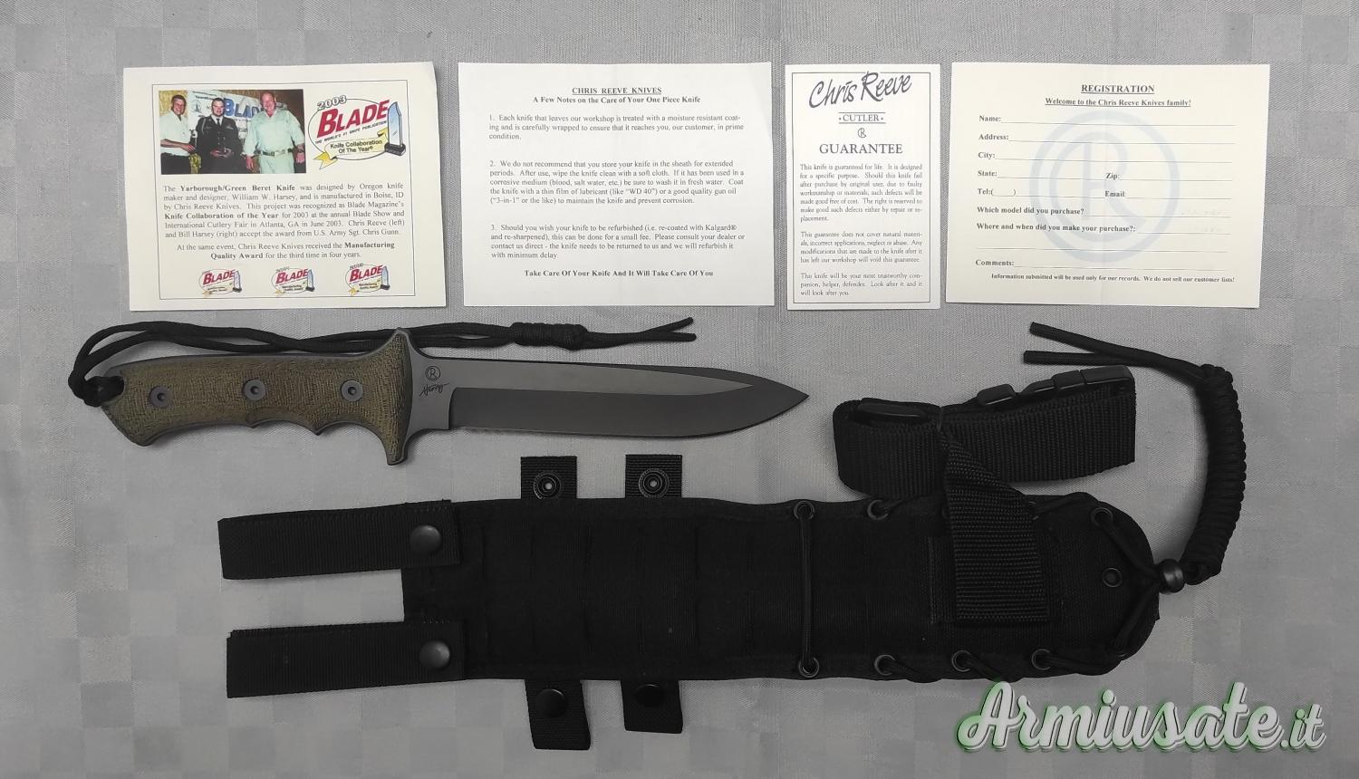 Costruzione "full tang", impugnatura in micarta ambidestra che garantisce una presa comoda e sicura, anche in condizioni di bagnato.
