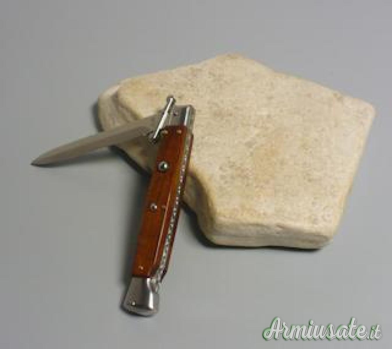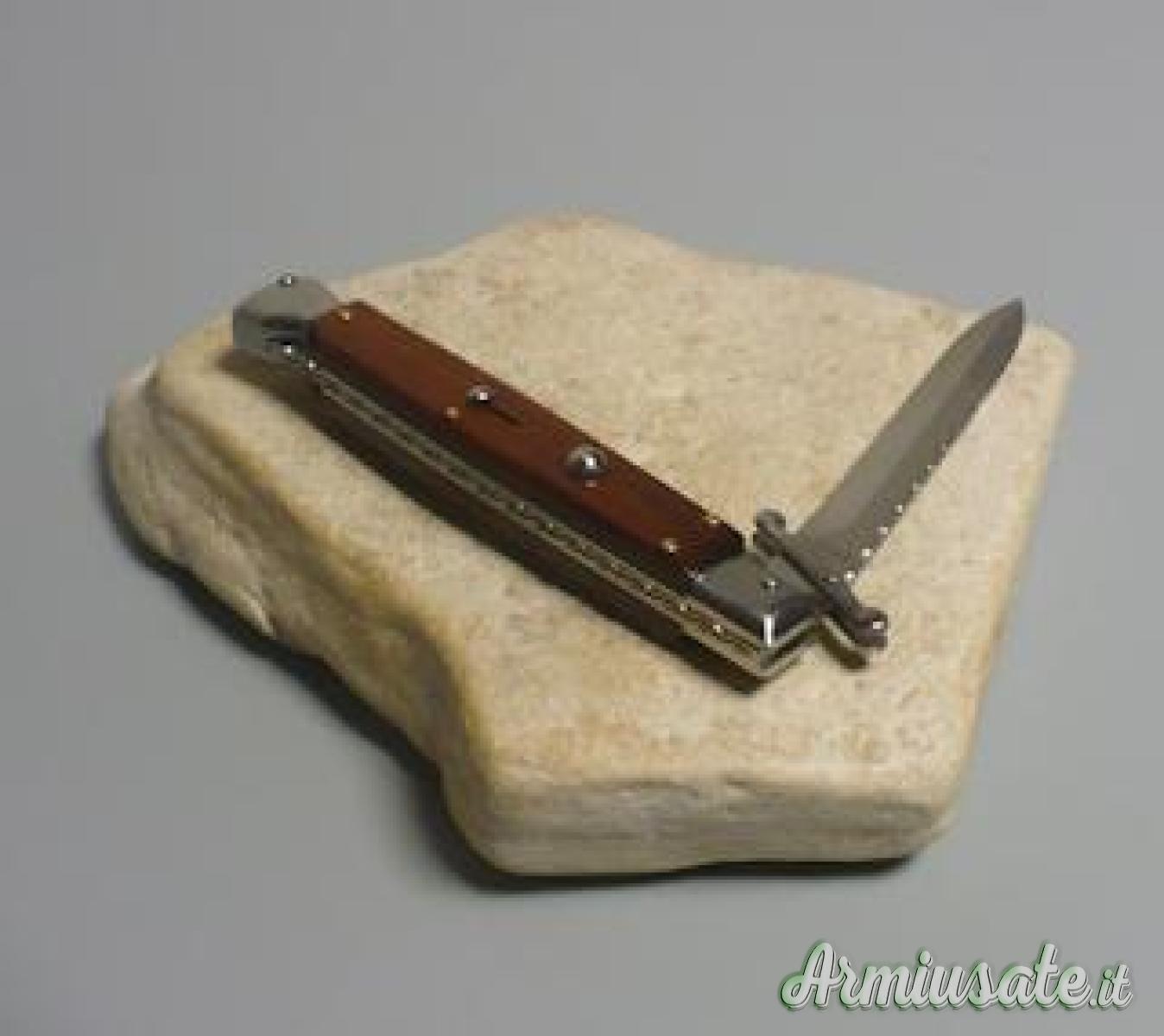 Coltelli da caccia / sportivi - Coltello a scatto Cm.28 Mod.Swinguard Sblct/28 Legno palissandro chiaro con lavorazione file work