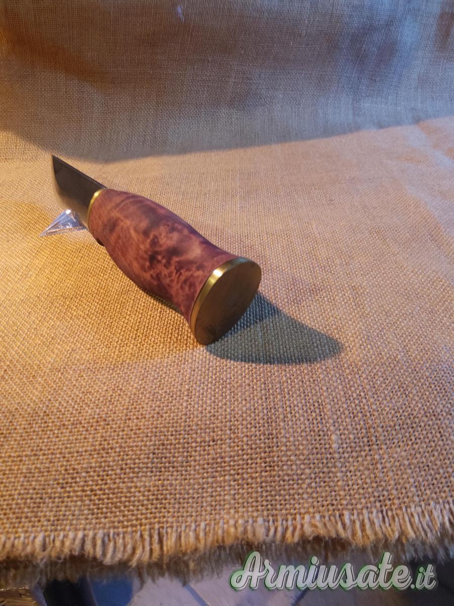 Vendo coltello Puukko Vaara. Lunghezza cm 21. Manico in betulla, lama brut de forge in acciaio inox HRC 57. Fodero in cuoio . Da aggiungere il costo della spedizione E.10