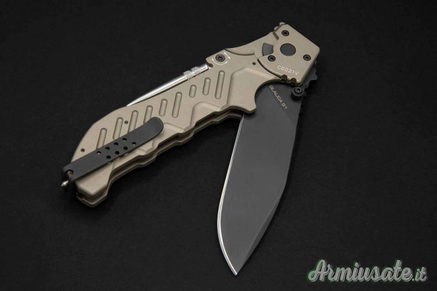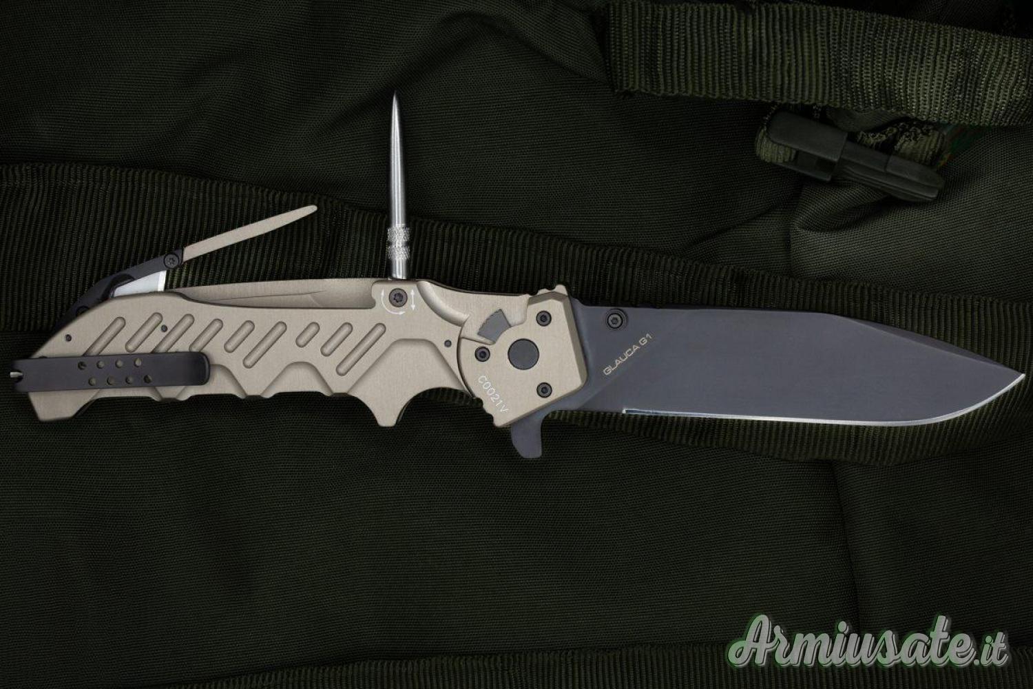 Glauca G1, evoluzione del modello Glauca, è dotato di caratteristiche specifiche progettate appositamente per il rinomato reparto GSG9, unità speciale della Bundespolizei, che lo ha adottato ufficialmente. Il manico, in alluminio anticorodal anodizzato con colorazione tactical mud, è dotato di frangivetro posteriore in carburo di tungsteno. La clip è regolabile in tre diverse posizioni (di cui una frontale). Sul dorso sono presenti uno scioglinodi in acciaio inox che può essere bloccato in posizione di apertura e un rescue tool richiudibile che permette all’operatore di effettuare un rapido taglio di emergenza per liberare un eventuale ferito dai propri indumenti. Questo secondo strumento è ottimo anche per l’utilizzo come taglia cinture.