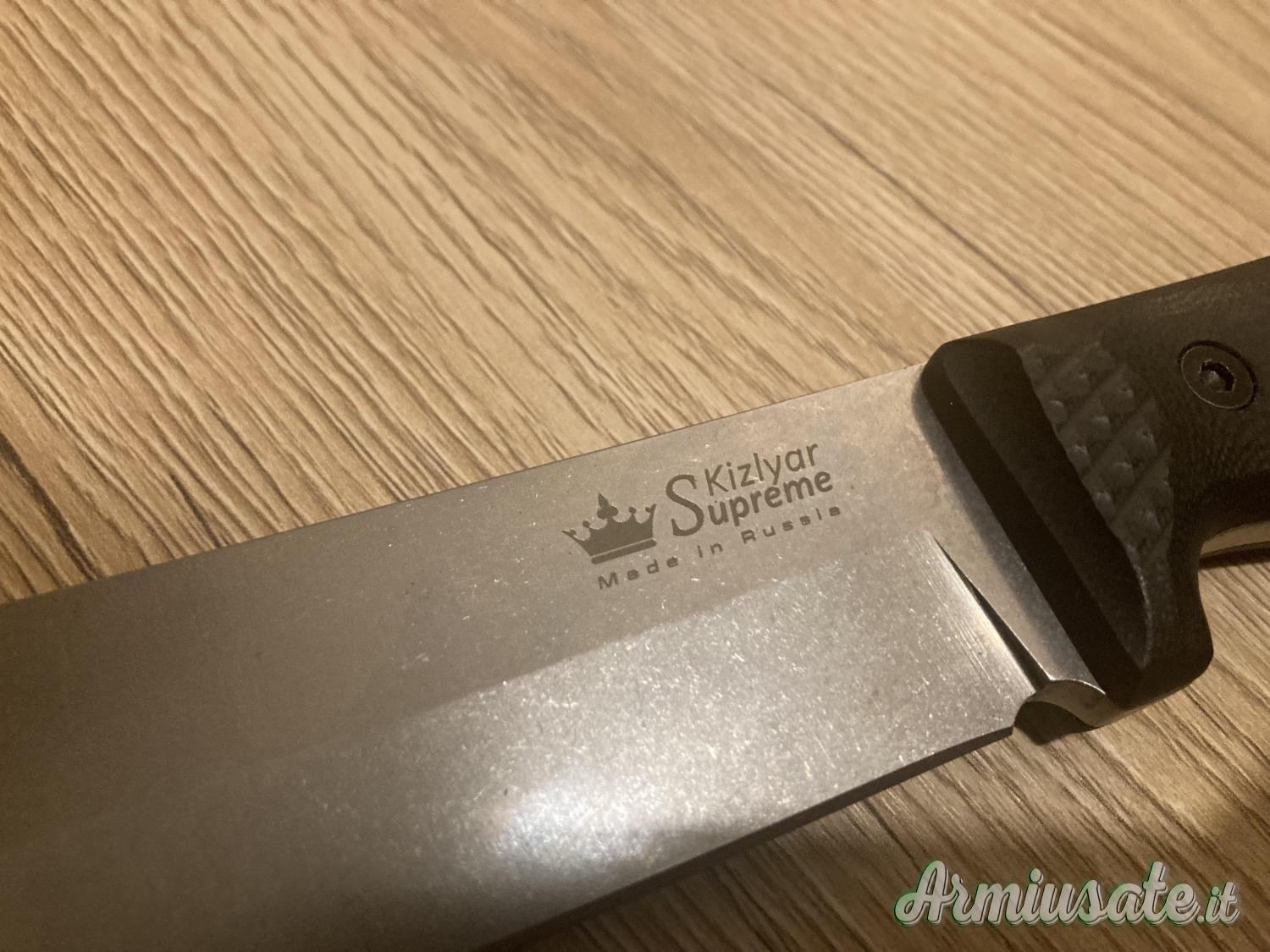 Coltello rarissimo ed introvabile. Come nuovo, mai utilizzato né riaffilato. Made in Russia, lama di 21,5 cm in acciaio Sleipnir, 5.8mm di spessore, manico in G10, fodero in cuoio. Provvisto di scatola originale. €300 spedizione inclusa, disponibile anche per scambio a mano a Roma.