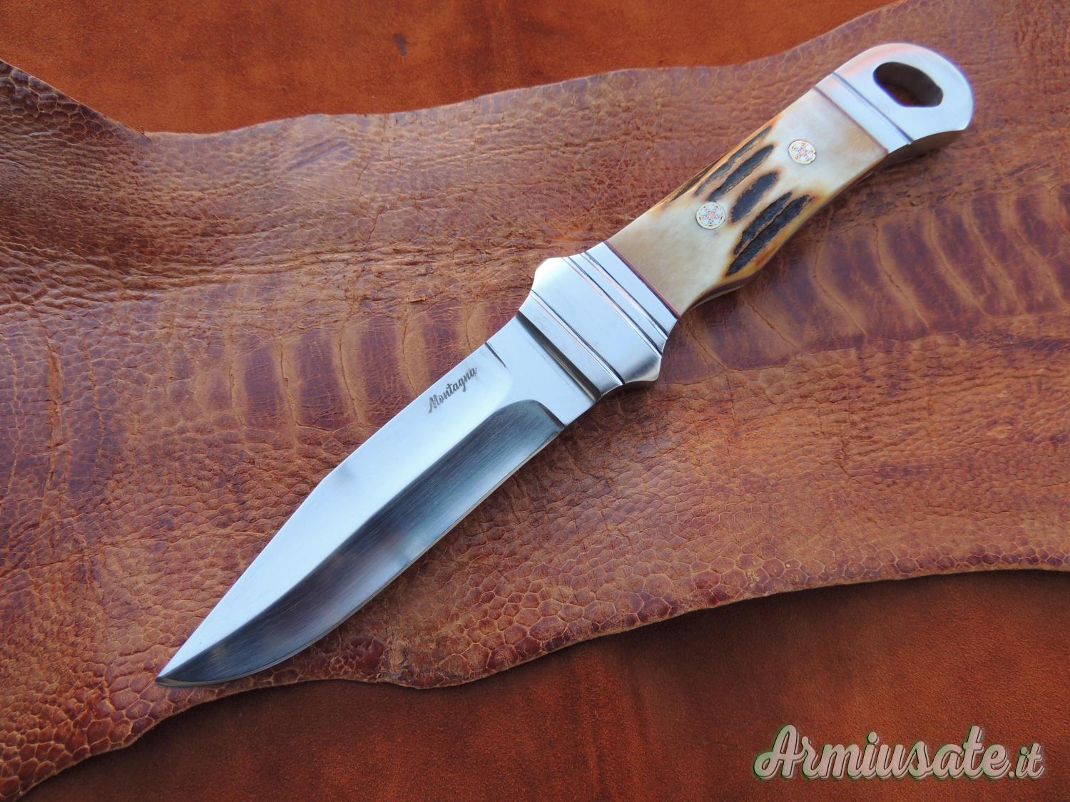 integrale N.Y.S. in acciaio D2, con guancette in cervo, lunghezza totale 22cm,