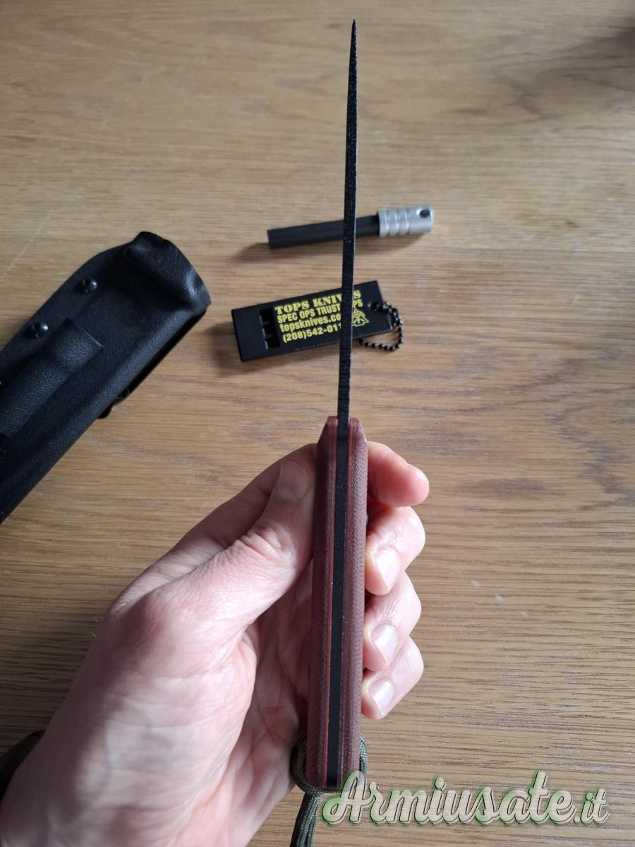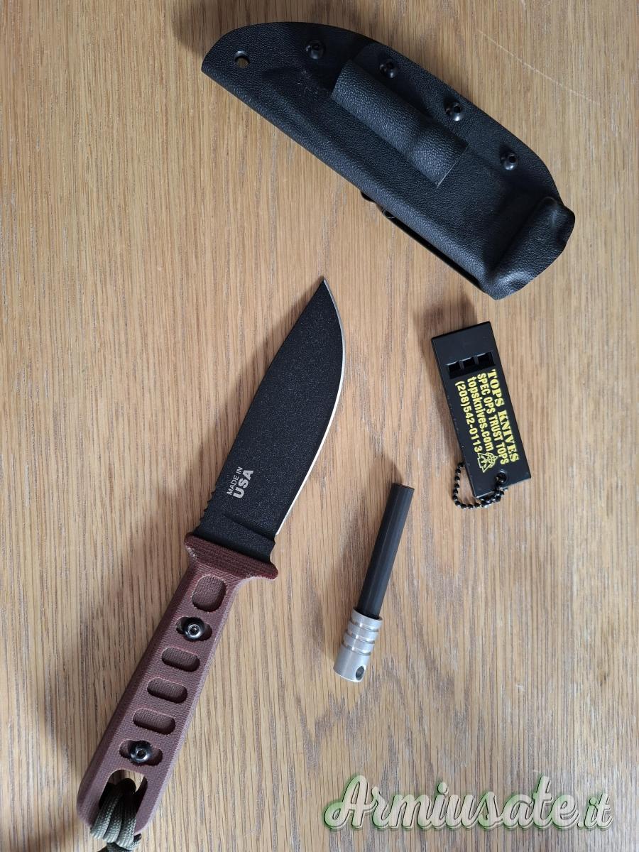 Full-tang in acciaio 1095, progettato da Leo e Joe, manico in micarta bruna, fodero in kydex e firesteel. Leggerissimo. Tenuto solo in collezione. Nuovo! Ultimo ribasso, prezzo non trattabile.
