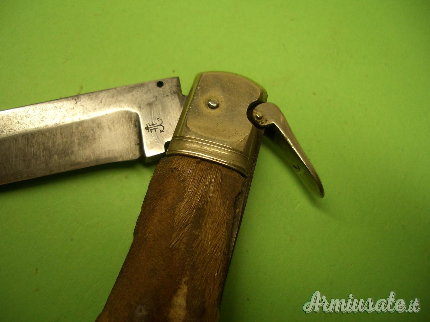 CONDIZIONI: considerando l’età…sono più che ottime, lama con i segni superficiali del tempo e uso, ma solida e senza corrosioni. Il blocco lama è efficientissimo. Le guancette hanno perso gran parte del pelo ma sono solidissime. Manufatto raro sia per la firma quanto per le ottime condizioni !