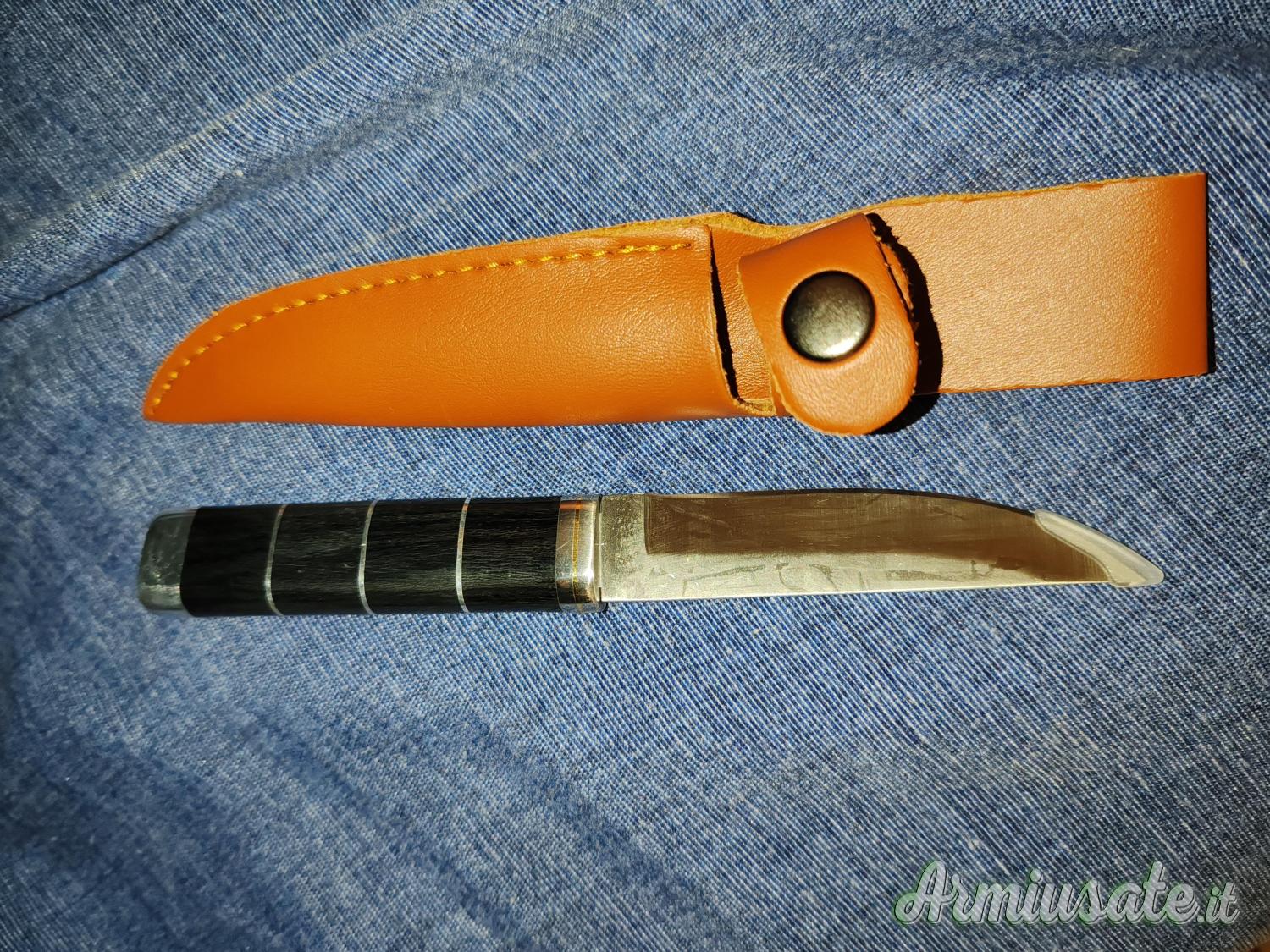 Dotato di una lama in acciaio 440 lucidato, un rinforzo in acciaio decorato con un cerchio in ottone e un manico in palissandro e legno total black combina estetica artigianale e praticità moderna.