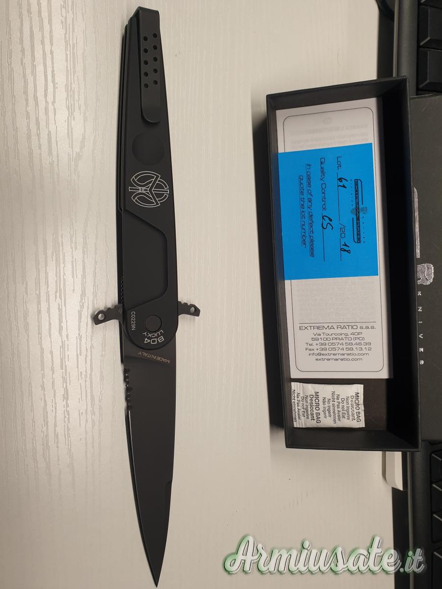 Vendo coltello Extrema Ratio BD4 lucky black mai usato perfetto con scatola e certificato con numerazione. Logo ex SISMI. Scatola e certificato con numerazione. No perditempo. Ritiro a mano su Roma.