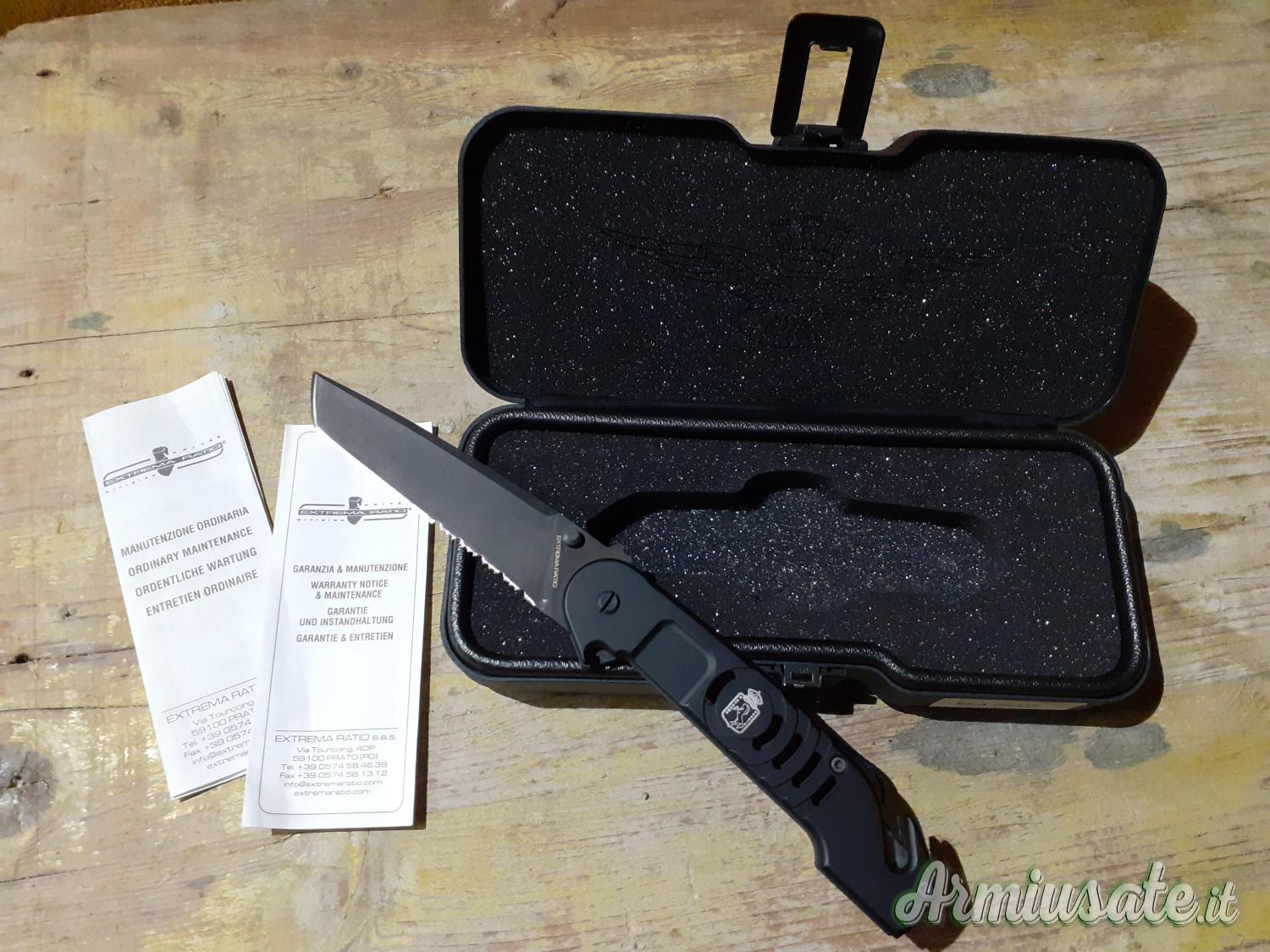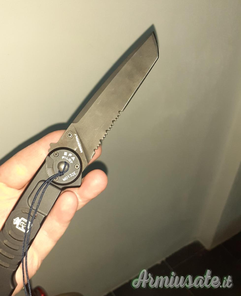 Tipo lama acciaio al cobalto, tanto con profilo dritto e parte seghettata .