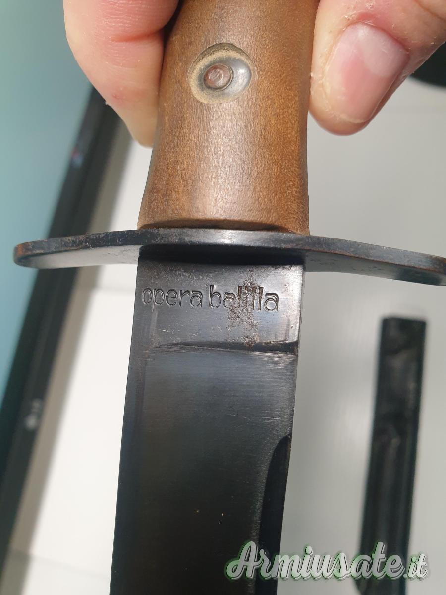 Pugnale da collezione Operabalilla modello 1936 con fodero originale. Misure pugnale = lunghezza totale = 290 mm; lunghezza pugnale = 270 mm; lunghezza lama = 170 mm. Il pugnale ed il fodero sono in perfetto stato di conservazione come si evince dalle foto. Brunitura originale. Si precisa che il pugnale è regolarmente denunciato come arma bianca in quanto a doppio filo, pertanto, l'eventuale acquirente dovrà essere in possesso di regolare licenza in corso di validità (Porto d'armi difesa personale, uso caccia o tiro a volo) e andrà denunciato all'autorità di P.S. No perditempo, no curiosi no persone senza licenza. Scambio a mano zona Roma.